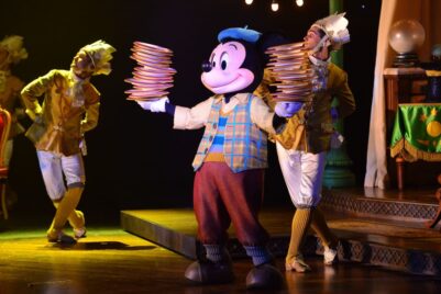 Over at Walt Disney Studios Park, Mickey Mouse takes the stages several times a year with performances of Mickey and the Magician. The show tells a story about a magician’s assistant who is given a task, but who also gets easily distracted. These photos are official press photos, provided by Disney.