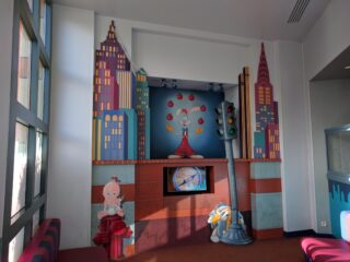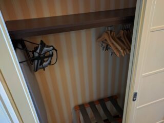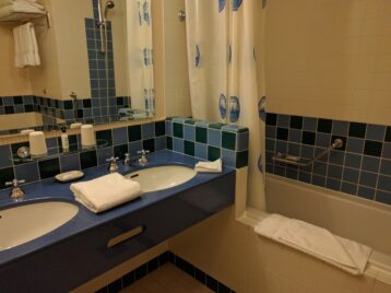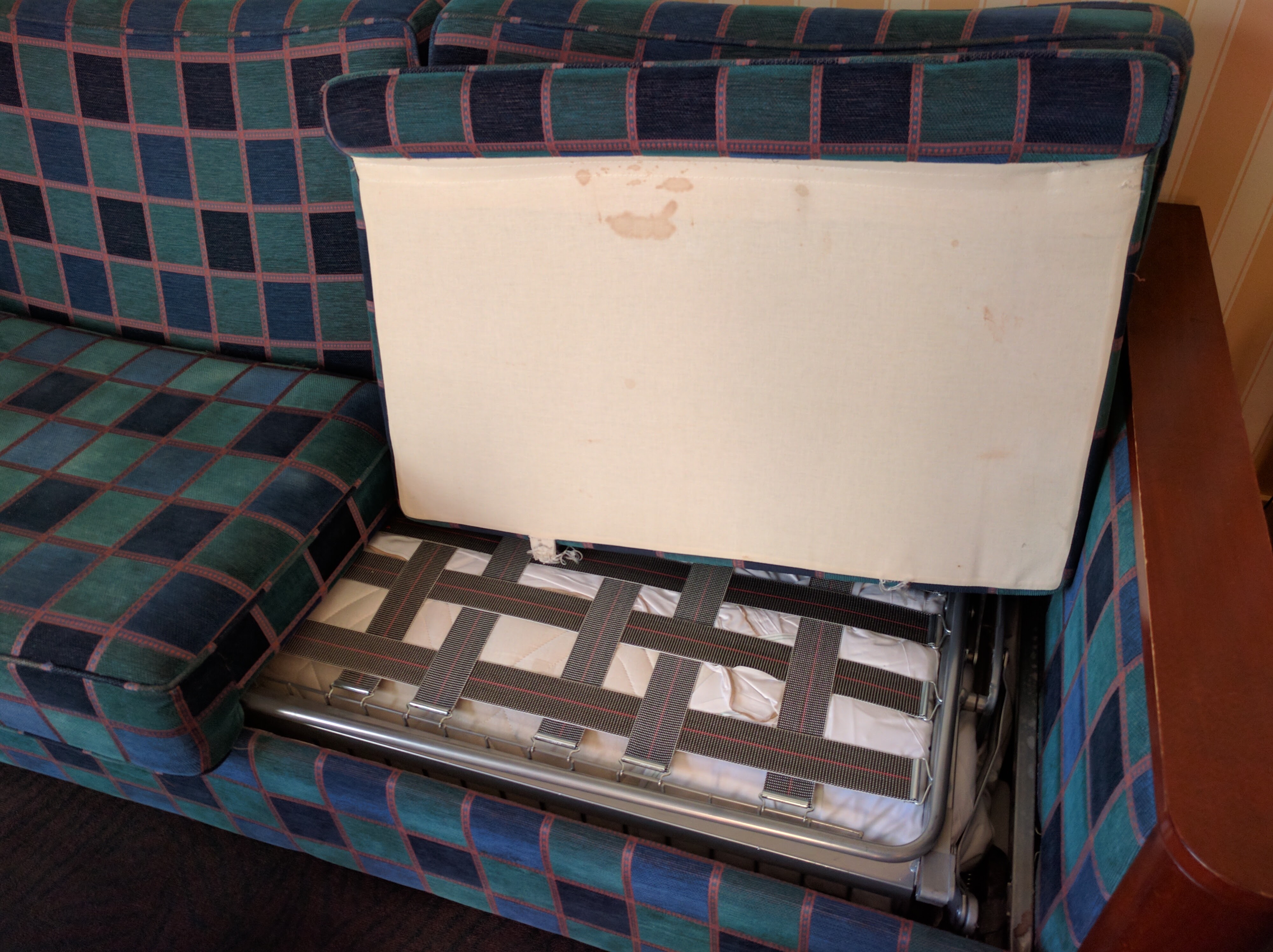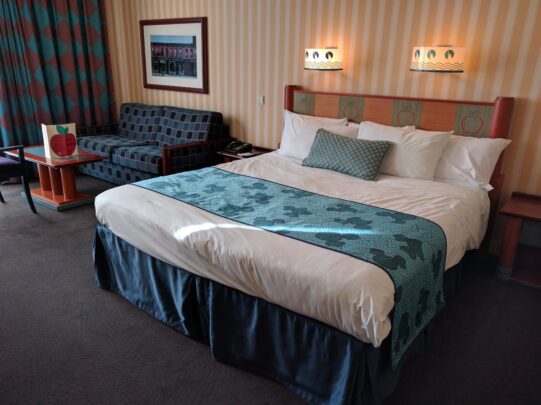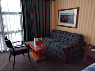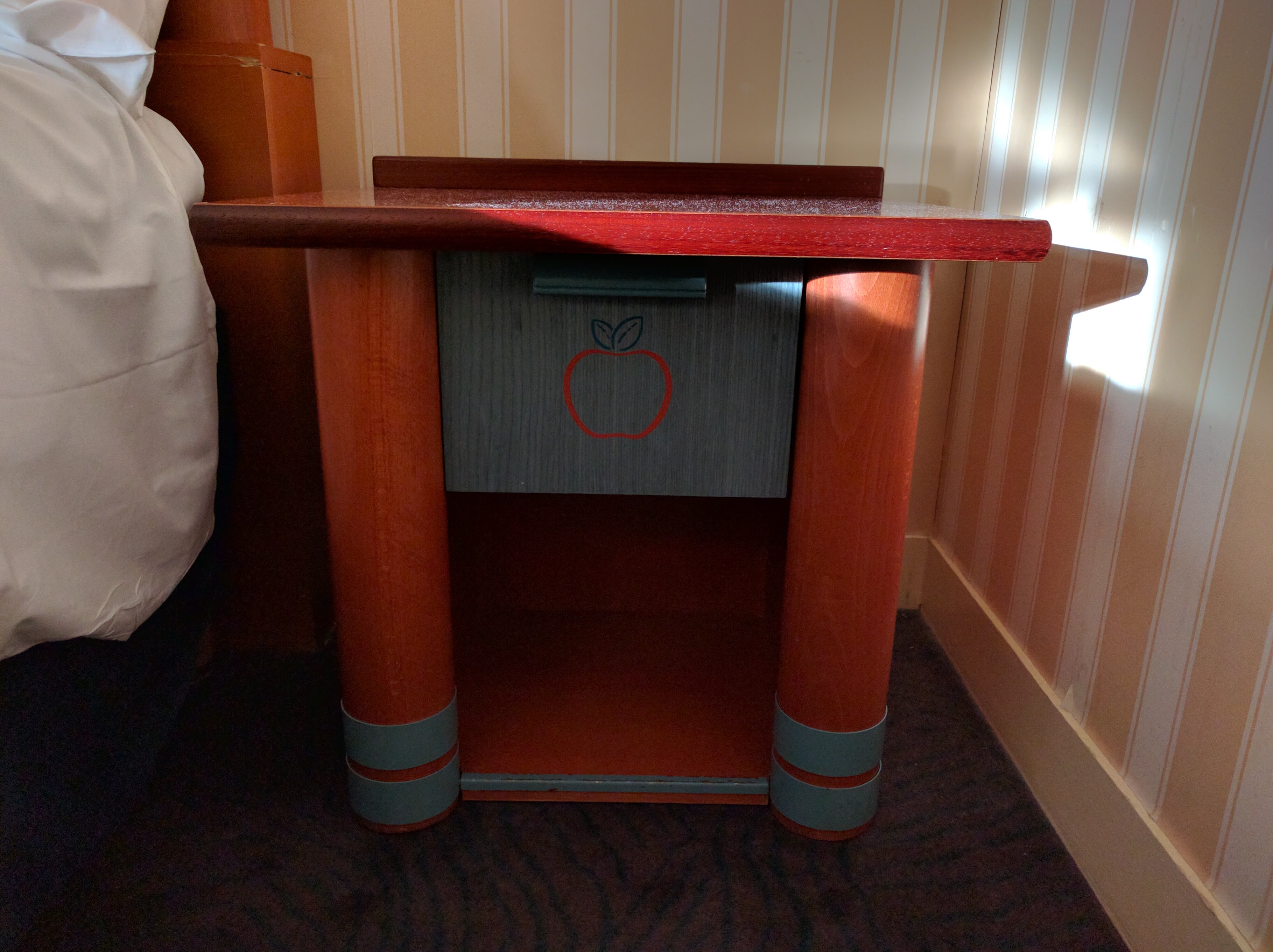 Die Thematisierung hier ist stark im New Yorker Geist mit dem Empire State Building Lampe, um die Äpfel im ganzen Raum. Es gibt viele gute Dinge über das Zimmer, die wir genossen haben. Es fühlte sich auf jeden Fall eine Klasse besser an als Newport und Sequoia, aber die Qualität ist mangelhaft. Das Zimmer war ziemlich staubig, viele Möbelstücke waren schmutzig oder extrem abgenutzt und die Tapete blätterte überall im Zimmer ab. Sogar die ausziehbare Couch hatte überall Flecken auf dem Kissen.