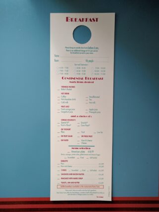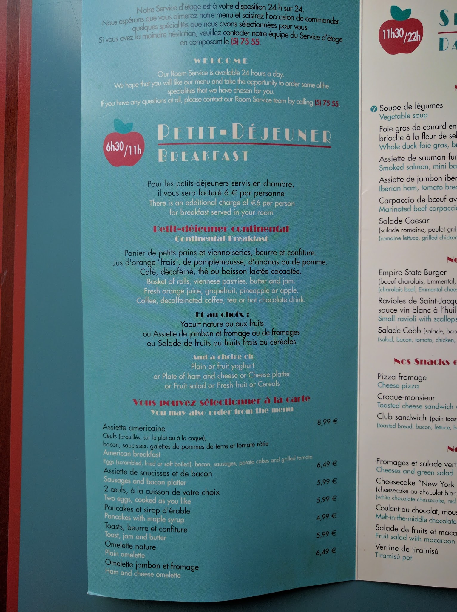 Das Hotel bietet gegen einen Aufpreis von 6 Euro pro Person ein Frühstück mit Zimmerservice an. Wenn Sie also nicht an eine bestimmte Frühstückszeit gebunden sein wollen, ist die Lieferung auf das Zimmer eine gute Option.