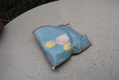 Das erste, was Ihnen auffallen wird, ist, dass das Ukiwa Bun wie ein Lebensretter aussieht, und wie der Name schon sagt, ist es das auch. Dieser Lebensretter soll Donald helfen, sich über Wasser zu halten. Wenn man von oben schaut, kann man Donald im Rettungsring sehen, wie er das Wasser genießt. Die Innenseite des Beutels ist blau und steht für Wasser. Und wenn man die Tüte umdreht, sieht man Donalds Hintern (hätte nie gedacht, dass ich das mal schreiben würde).