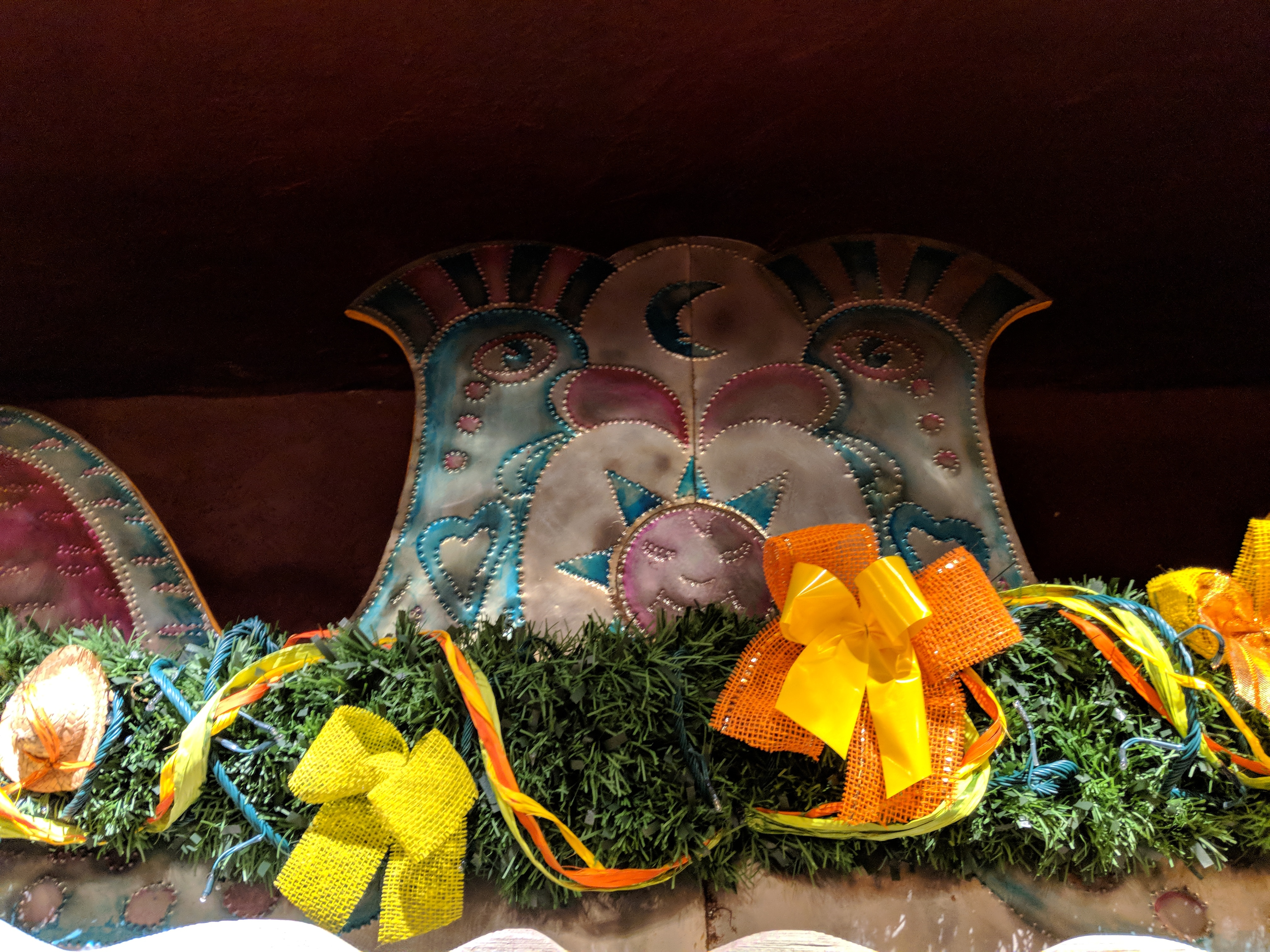 Insgesamt ist die Dekoration des Parks einfach und anspruchsvoll. Jedes Restaurant hat einen themenbezogenen Baum oder eine themenbezogene Dekoration. Fuente del Oro fügt den Lichtern kleine mexikanisch inspirierte Dekorationen und goldene Schleifen hinzu, Plaza Garden Inn schmückt sich mit zarten fuchsiafarbenen und weißen Akzenten und Hakuna Matata hat einige farbenfrohe und afrikanisch inspirierte Dekorationen.