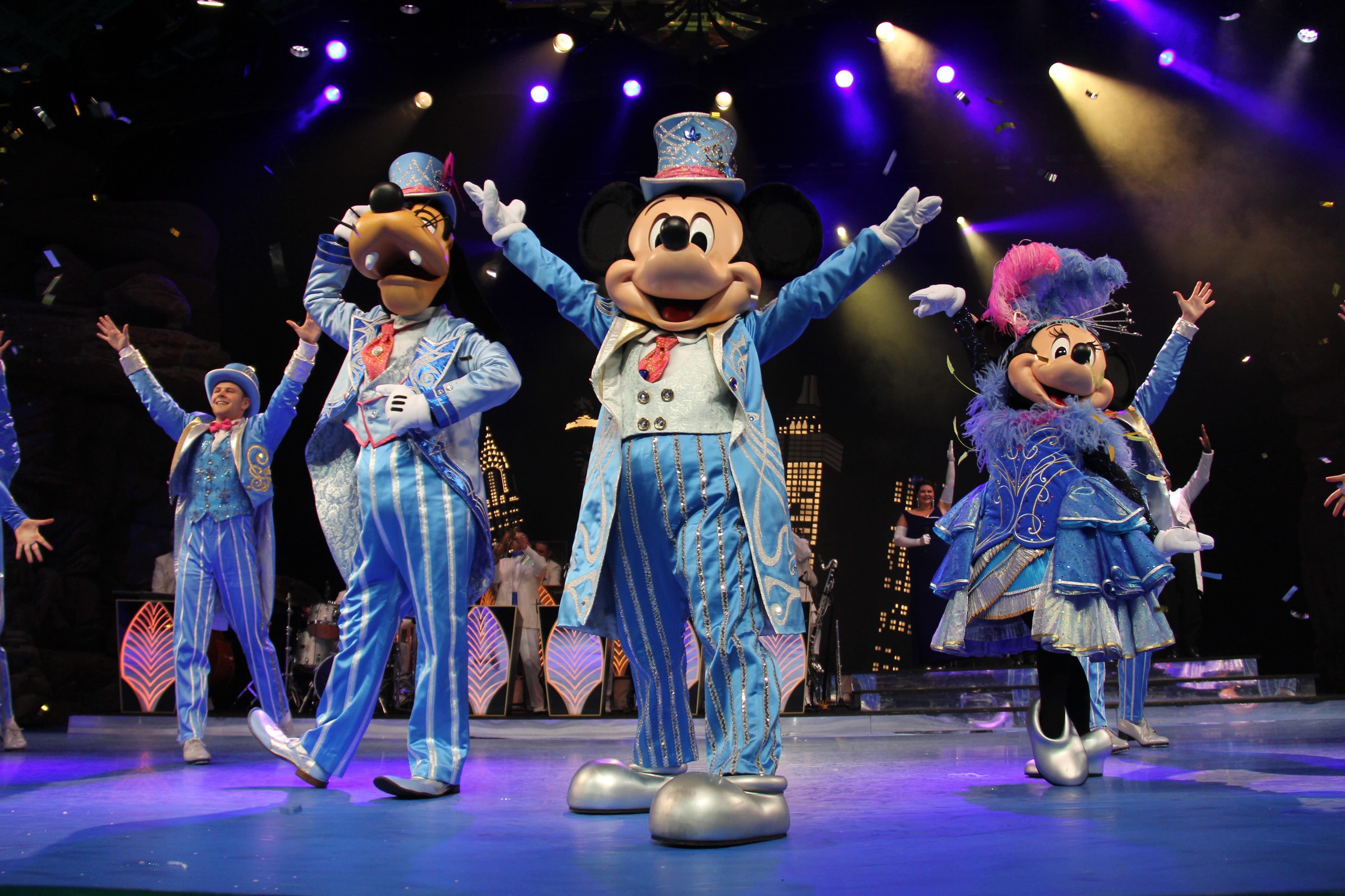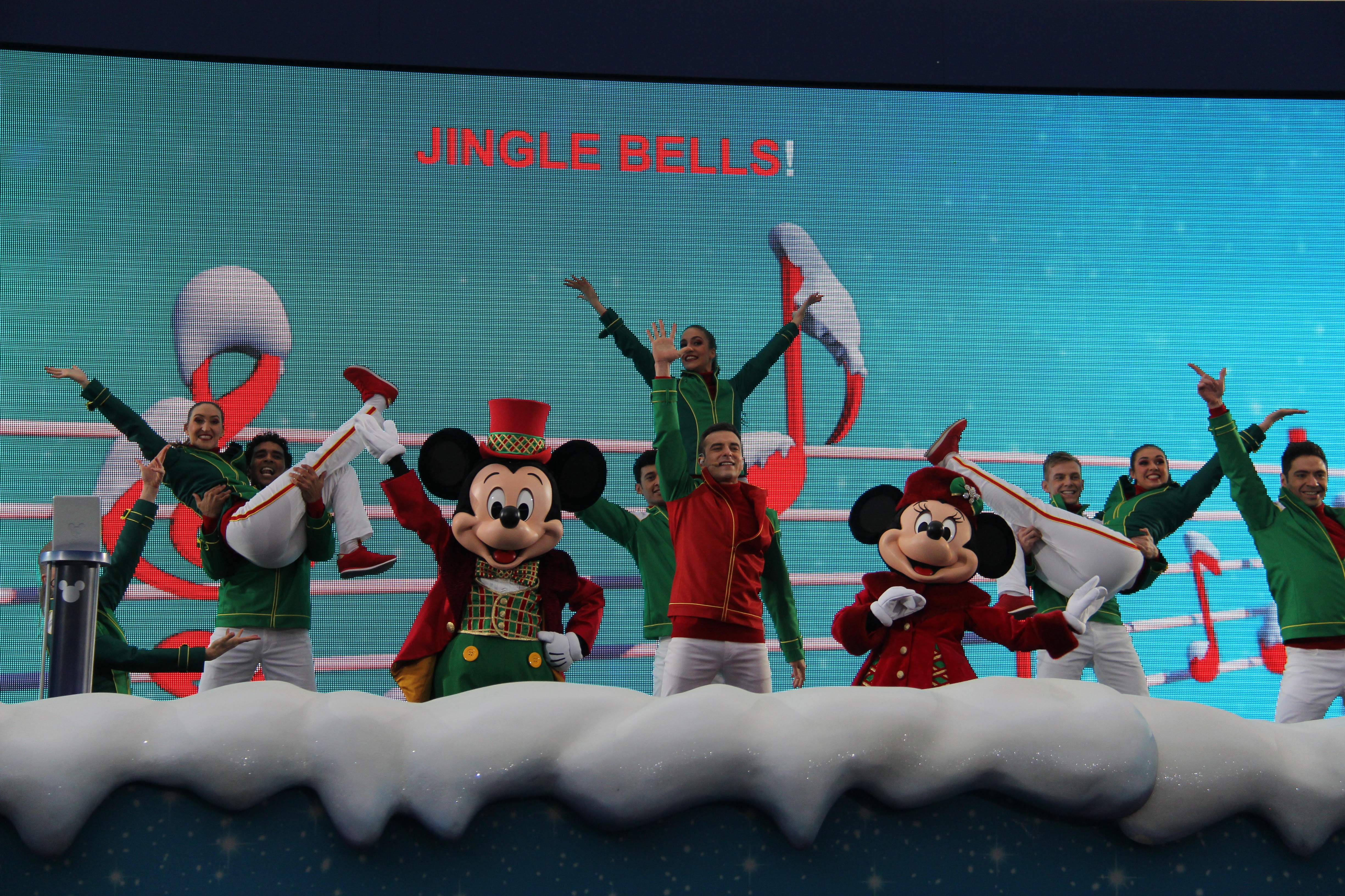 Inspiriert von Tokyo DisneySea stimmt diese große, jazzige Aufführung mit einigen guten alten Bigband-Nummern, Stepptanz und einigen Auftritten von Mickey, Minnie und Goofy auf die Weihnachtszeit ein. Die Bühne ist mit einer Kulisse der New Yorker Skyline geschmückt, während die Band und die Sängerinnen und Sänger in leuchtendem Weiß und sattem Blau gekleidet sind. Die Talente auf der Bühne sind unglaublich, und ich war von der Show überwältigt.