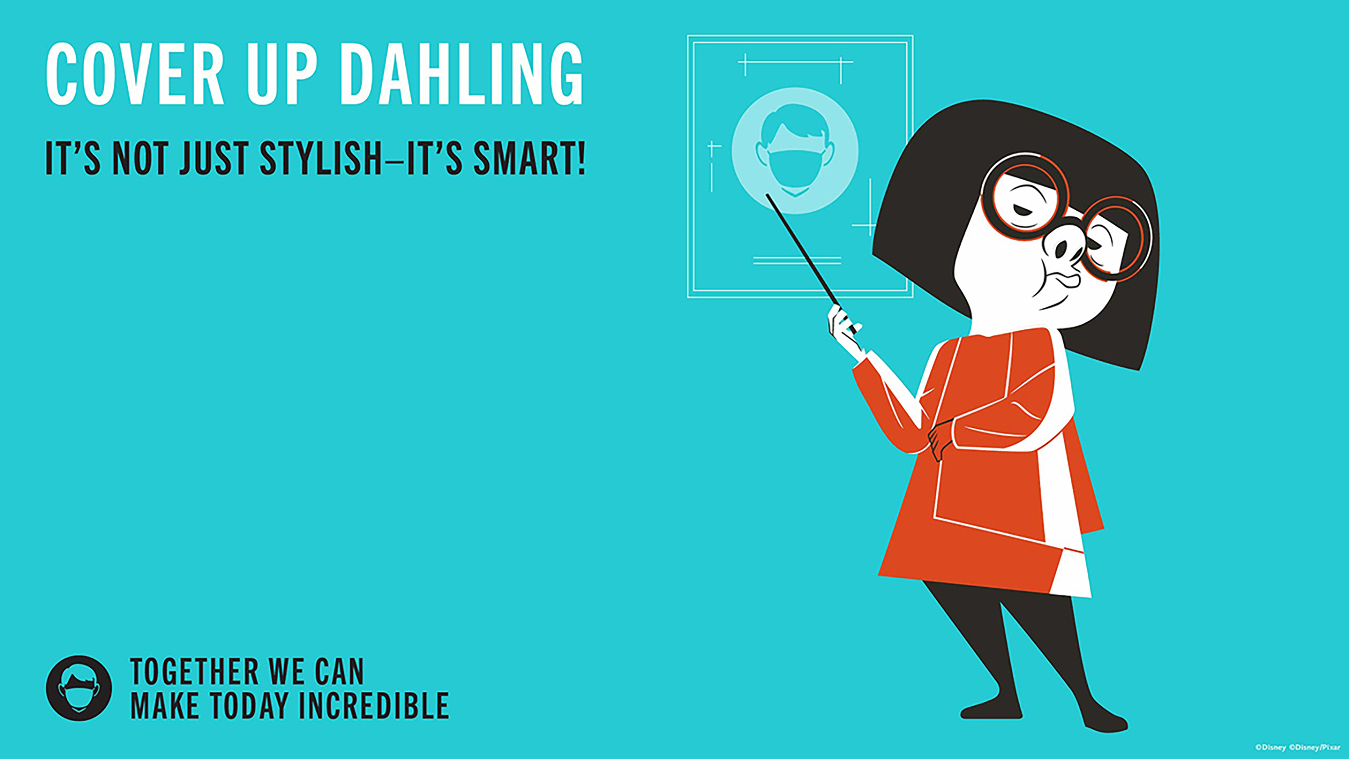 - Edna asks you to wear a mask: Cover Up Dahling – It’s not just stylish – it’s Smart!