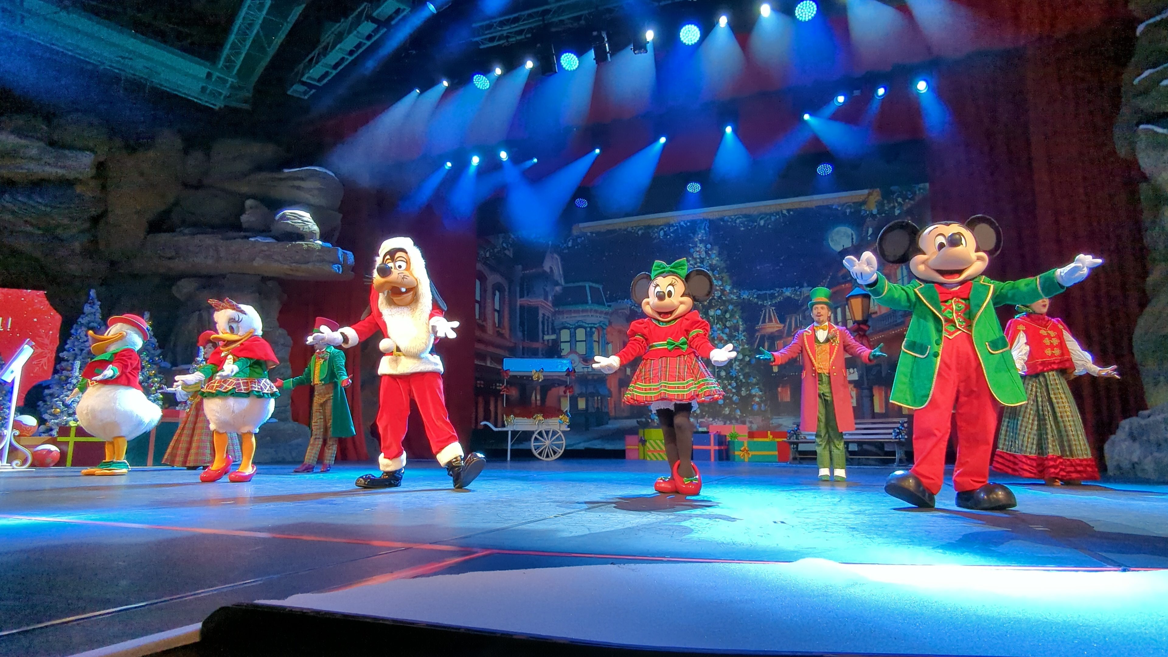 Mickey & Friends alongside the Disney Princesses and Santa in “Mickey’s Dazzling Christmas Parade” during the day and the nighttime version in the evening. During the parade, they will even make a special stop to dance, sing, and turn on the Christmas tree lights!