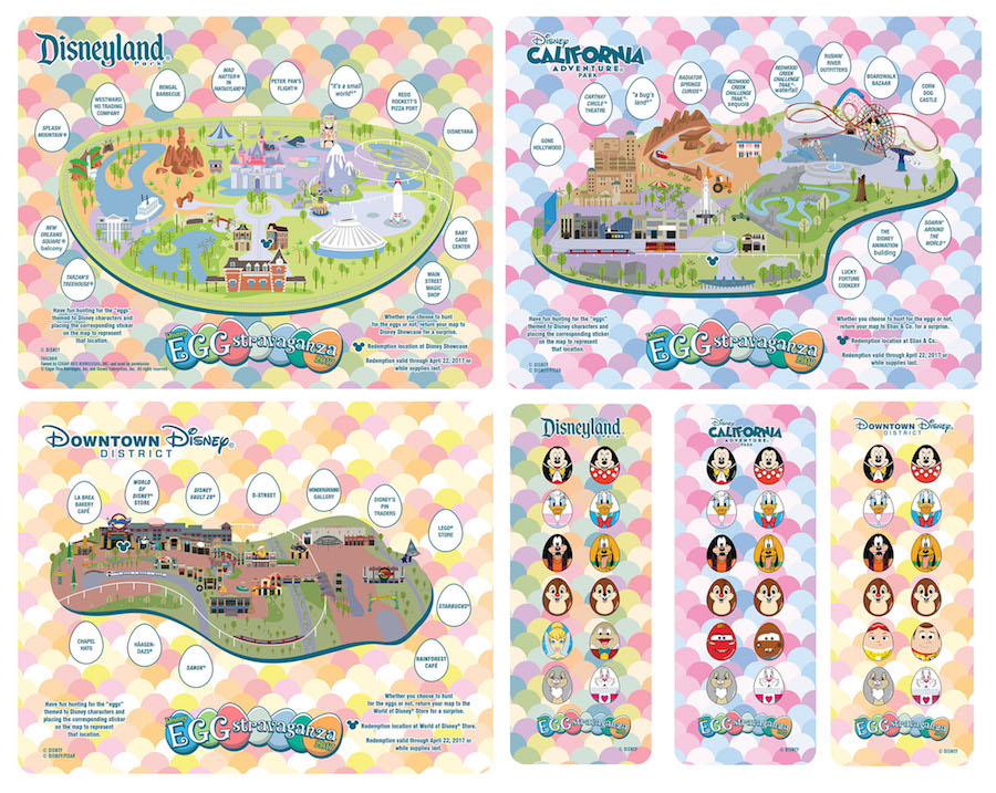 To participate, guests can pick up a map and stickers for $5.99 (plus tax) at select merchandise locations throughout Disneyland Resort.For guests visiting Walt Disney World Resort in Florida, don’t forget the Egg-stravaganza is currently taking place at the Epcot International Flower & Garden Festival through May 29, 2017.