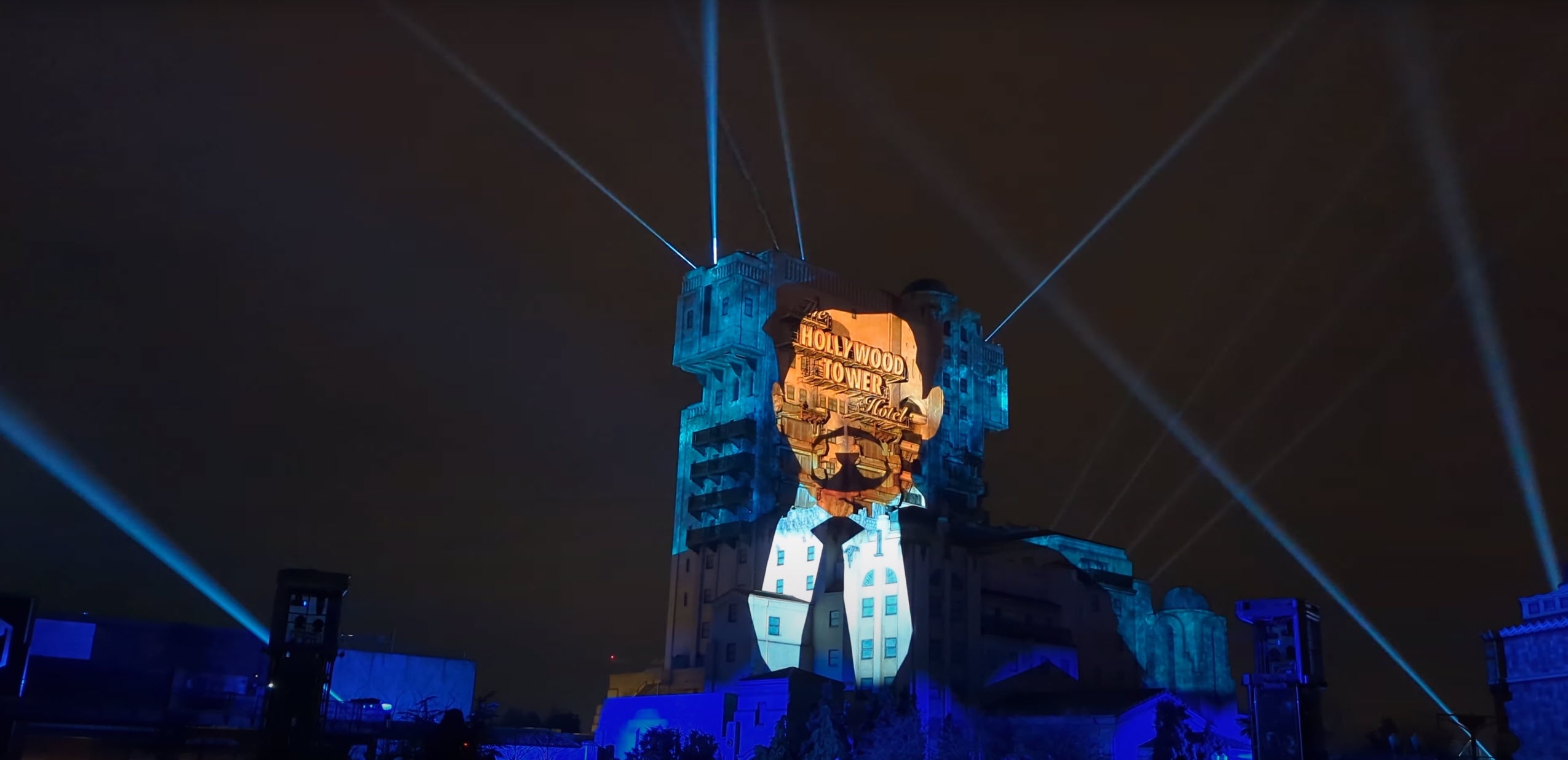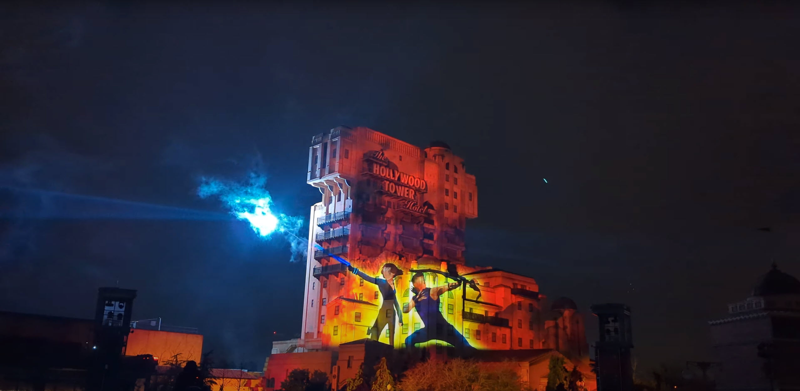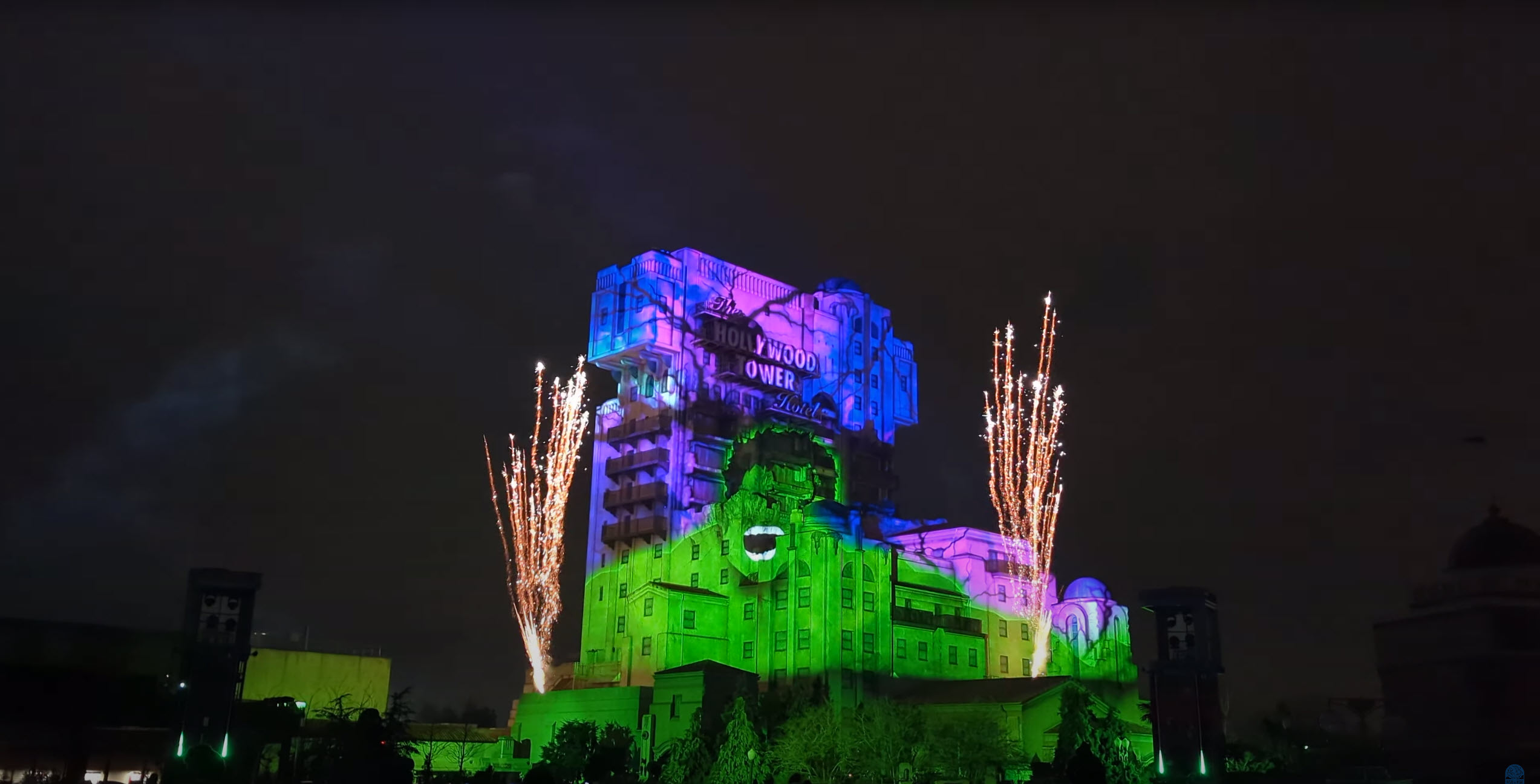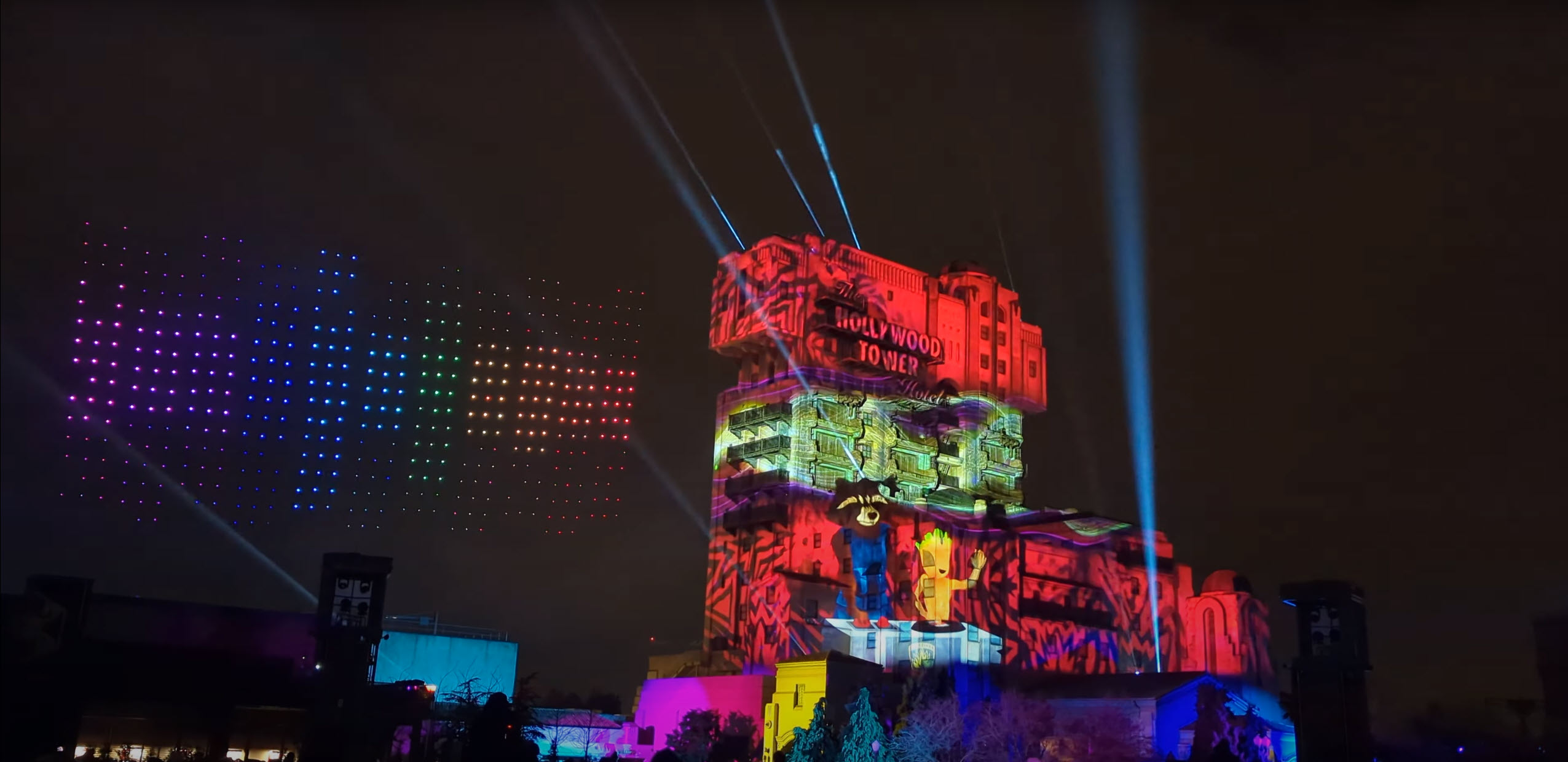 No drones for this scene, but fireworks shoot from the Tower of Terror