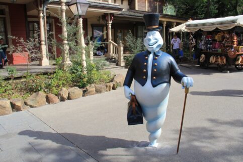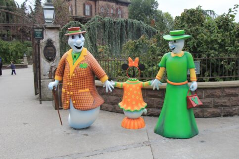 NOTE: some of the ghosts have been moved around since we saw them. There is some fan discussion on ghosts near Phantom Manor. While we saw the ghost family at the entrance to Phantom Manor, they have now moved to a more central location within Frontierland.