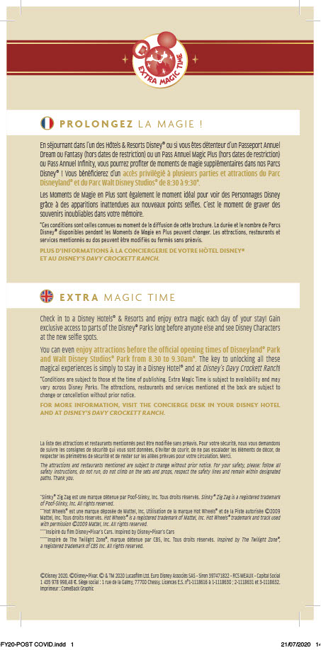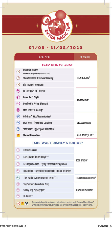New Extra Magic Time Program for August 2020 at Disneyland Paris