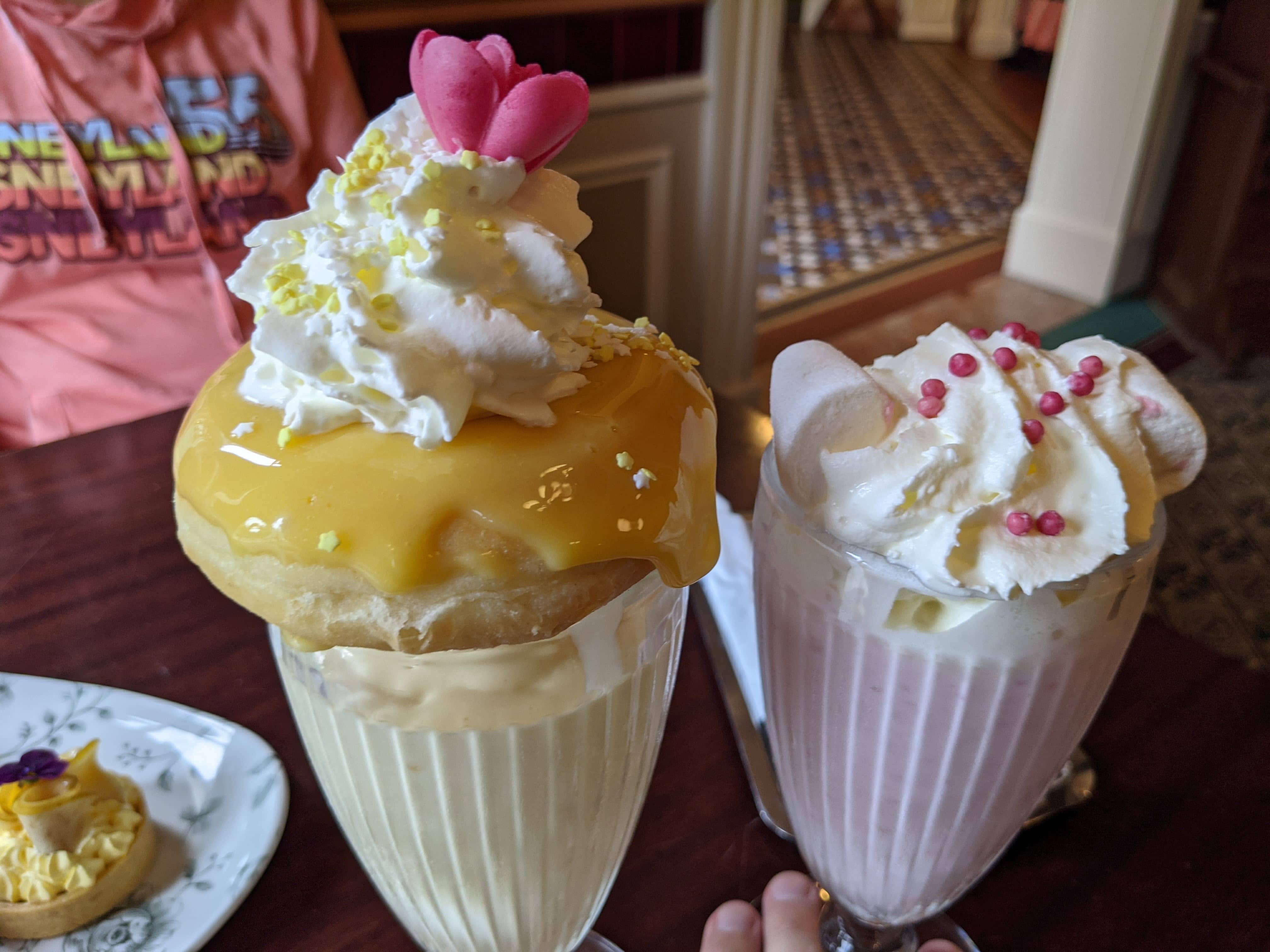 Le Victoria’s Home-Style Restaurant est connu pour ses thés et ses milkshakes, il était donc agréable de voir un milkshake supplémentaire ajouté pour cet événement. Le milkshake La Belle et la Bête est un milkshake à la crème glacée à la vanille avec un donut recouvert de purée de mangue, de crème fouettée et de garnitures supplémentaires. Le milkshake coûte, comme les autres milkshakes, 11 euros.