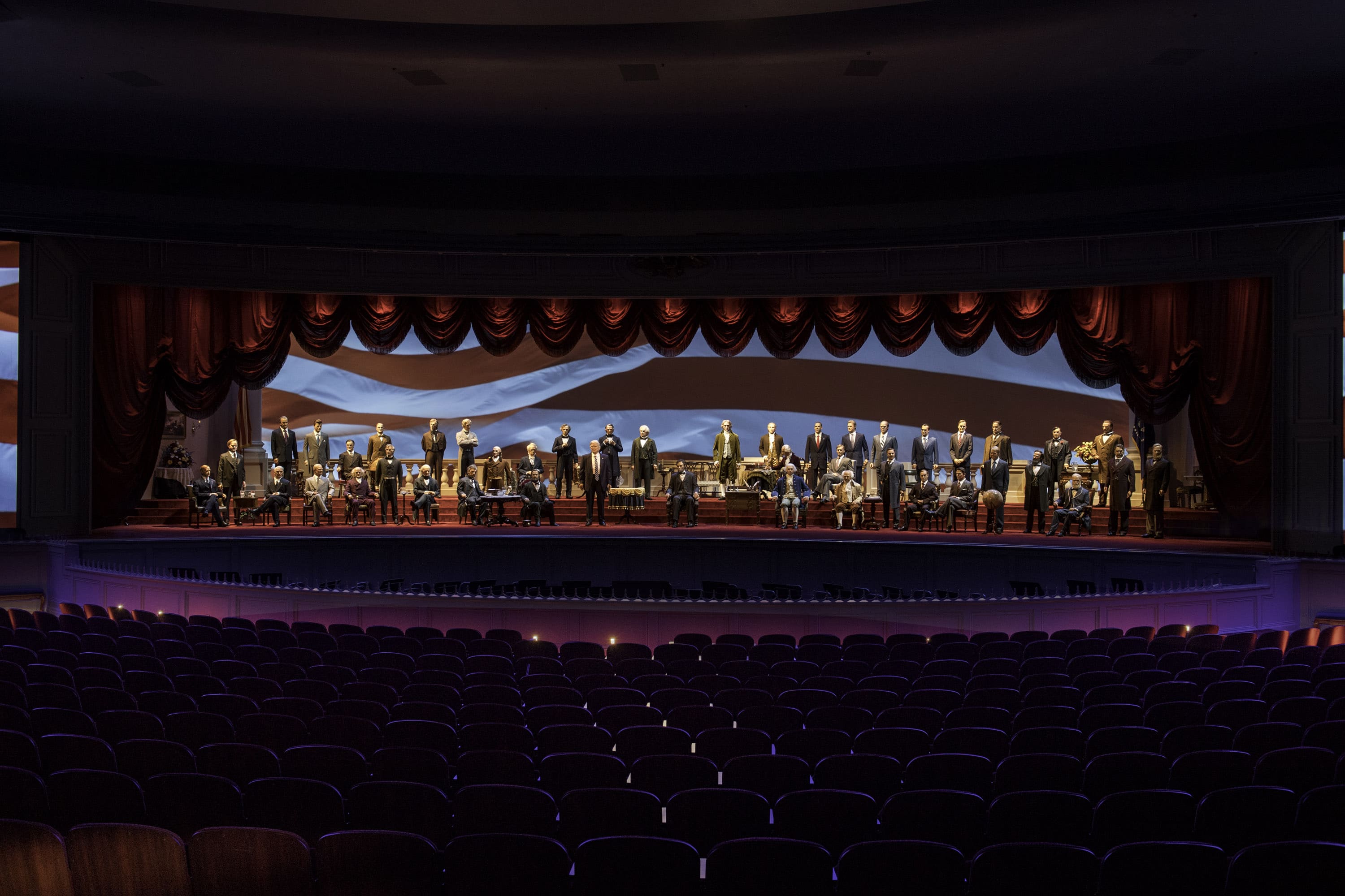 In addition to updating the show’s content, Imagineers have incorporated the latest in theatrical design and Audio-Animatronics technology. Landmark moments in history come alive on a panoramic 180-degree screen that transports guests across more than 200 years of the American story. High-impact projection, sound, lighting and other enhancements take guests into rare and indelible moments in history that helped define a nation.
