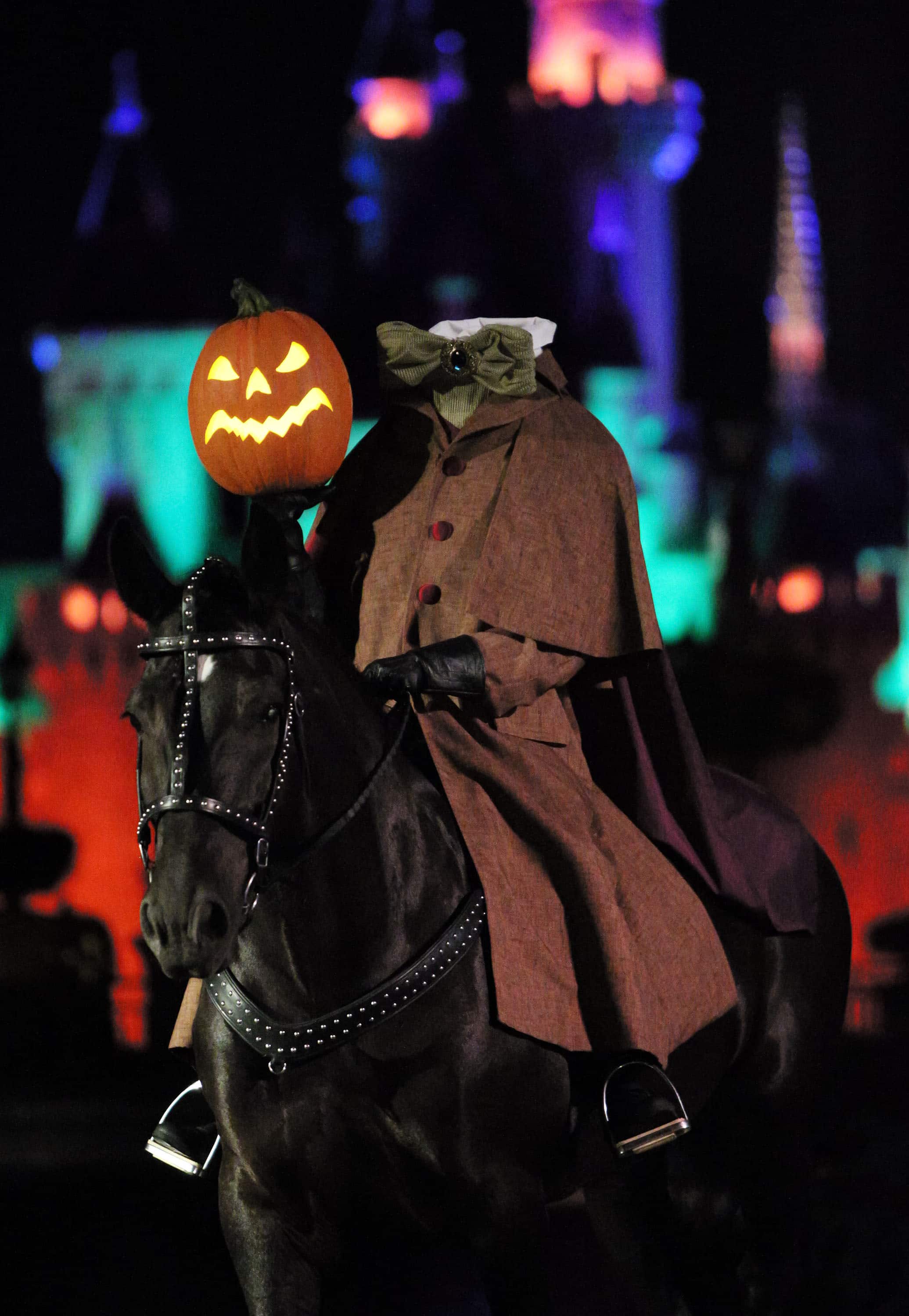 Also exclusive to Mickey’s Halloween Party is the “Frightfully Fun Parade” led by The Headless Horseman of Sleepy Hollow (from the Disney animated classic “The Adventures of Ichabod and Mr. Toad”). The Horseman rides through the park on his ghostly black steed with a flickering jack-o’-lantern to usher in the parade featuring Jack Skellington followed by a procession of grim, grinning (and hitchhiking) ghosts from the iconic Haunted Mansion attraction. The creepy Dr. Facilier from Disney’s “The Princess and the Frog” calls on mystical powers, summoning his Shadow Men from the bayou to loom large over his strange and twisted Voodoo parlor. The mischievous Disney villains appear out of the darkness, ready to stir up some trouble. The wicked gathering includes the Evil Queen, Jafar and Cruella.