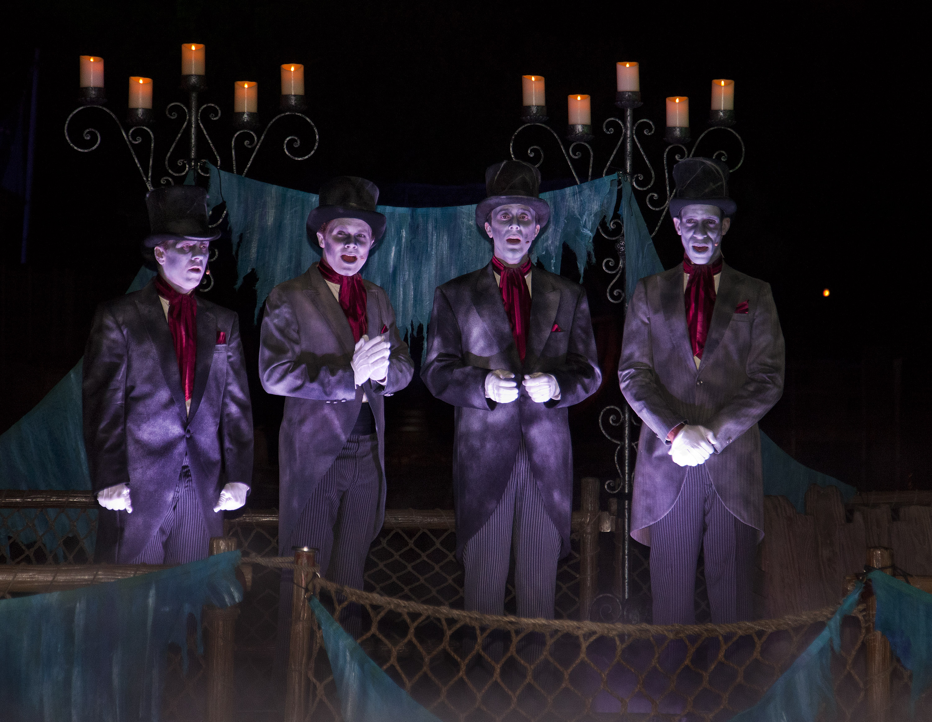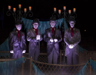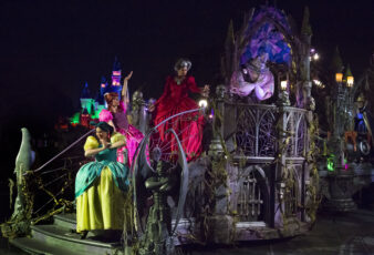 Disney characters–villains as well as Mickey Mouse and friends–will appear at locations throughout the park, and the Cadaver Dans ghostly quartet will perform on the Rivers of America in New Orleans Square and Frontierland.