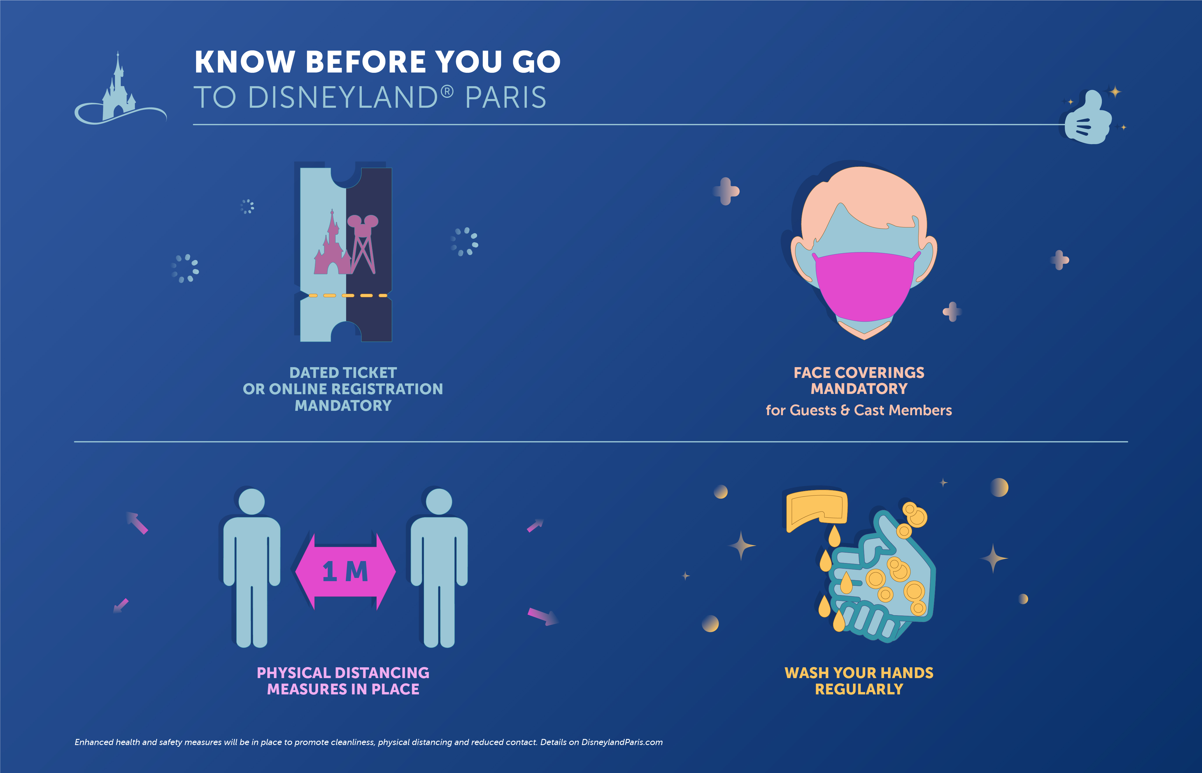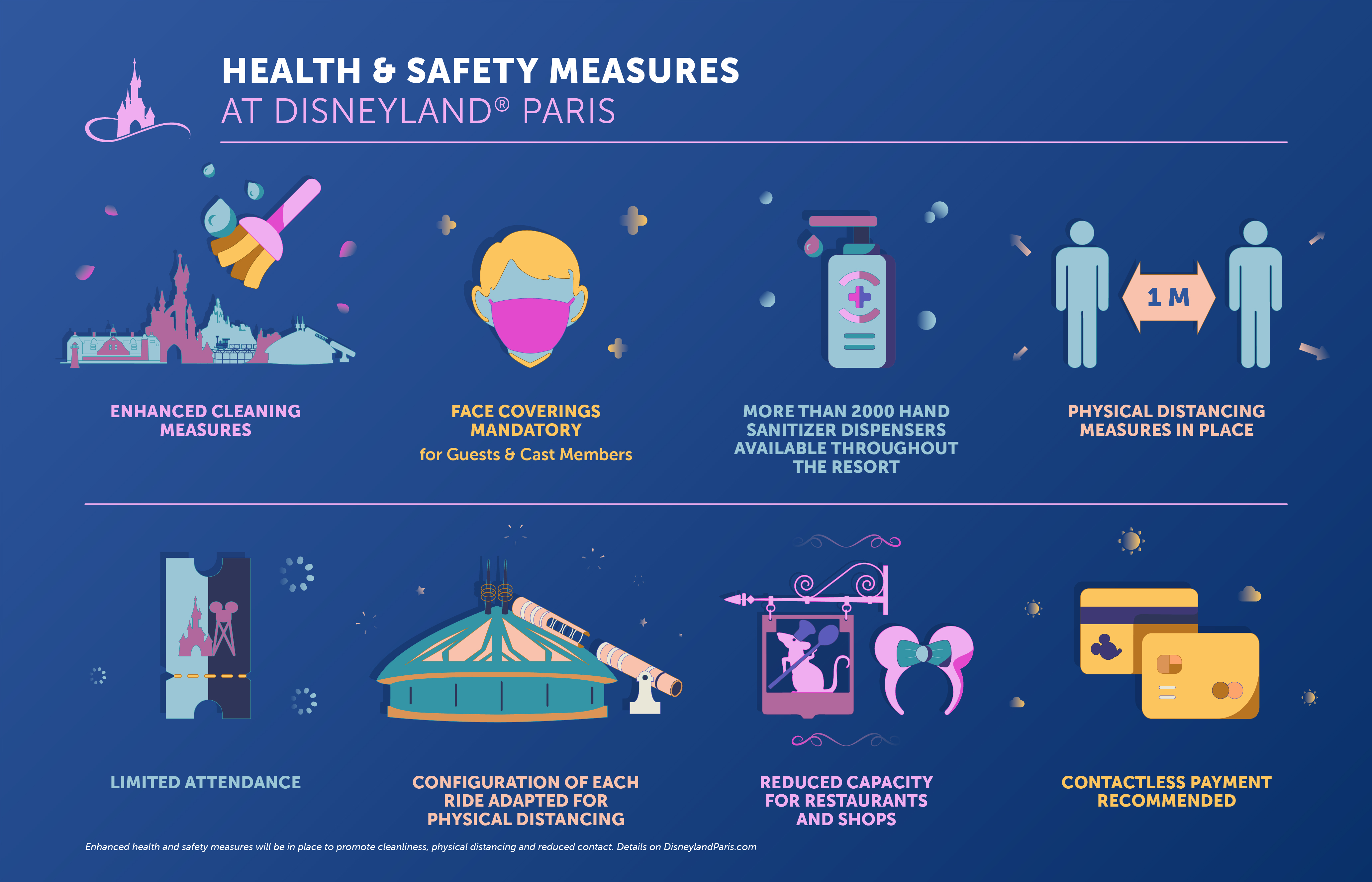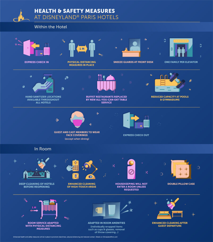 As Disneyland Paris will start its phased reopening on July 15th, it is good to know that when you visit, some things might have changed. Below you will find infographics explaining every change.