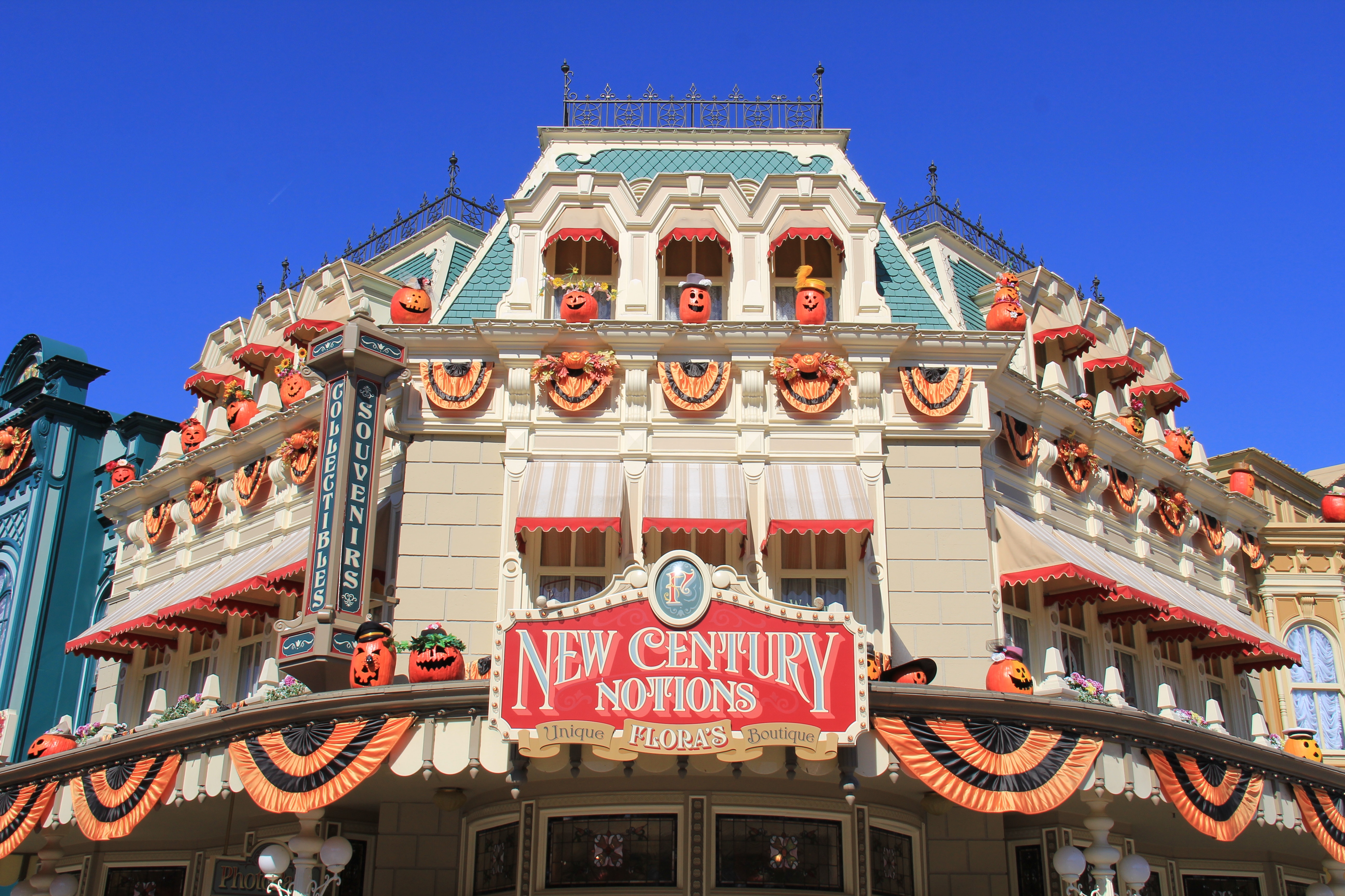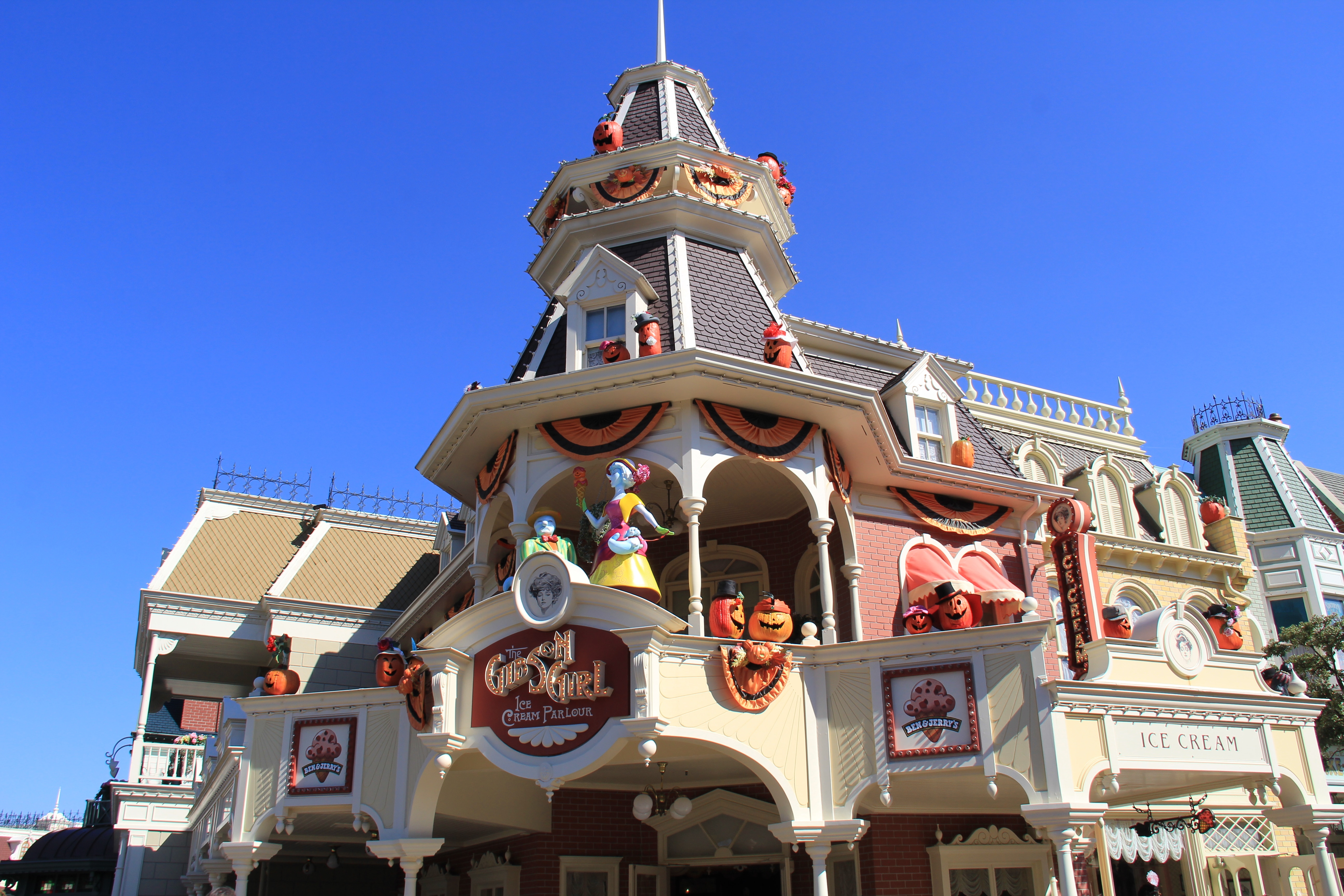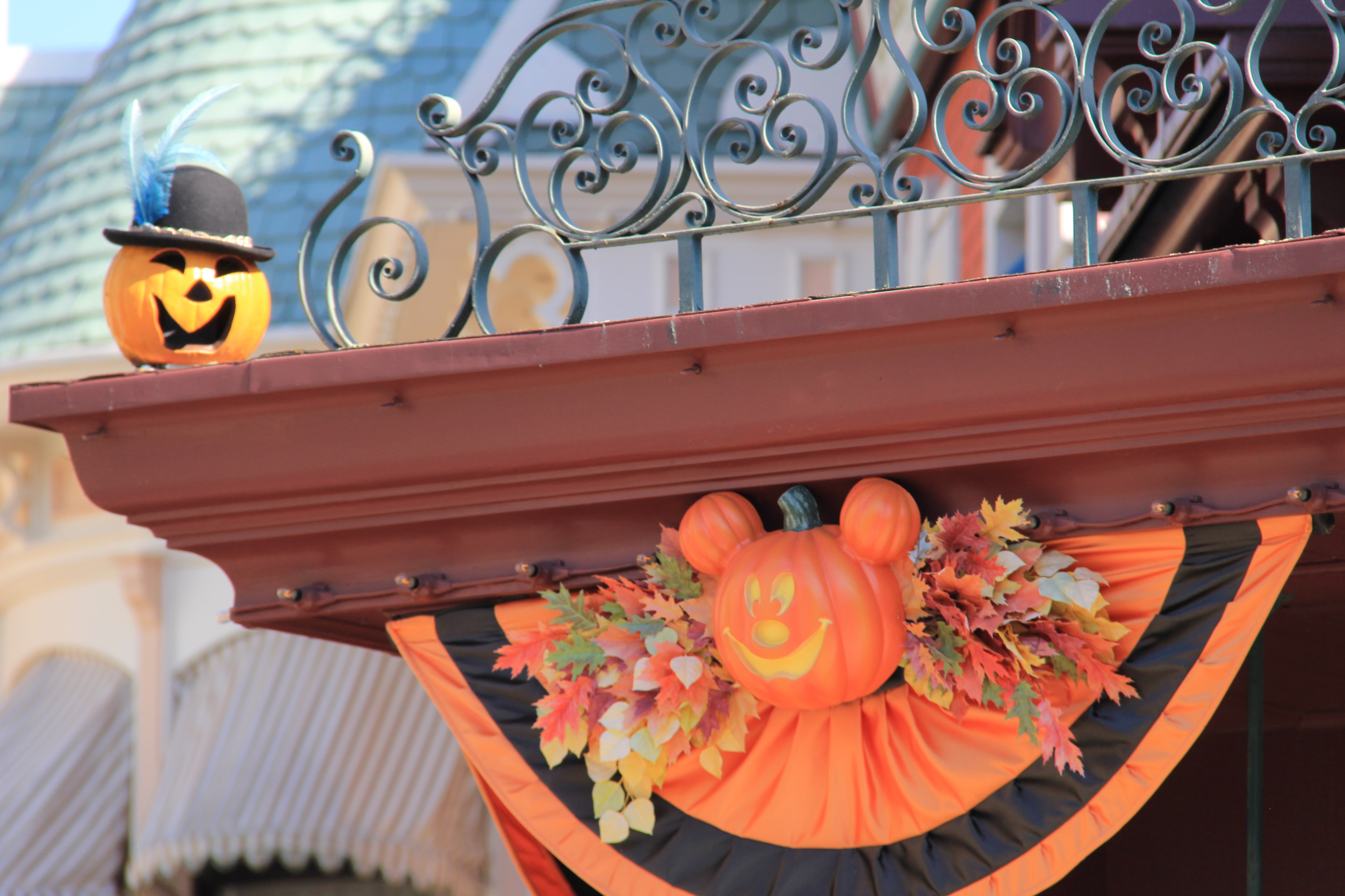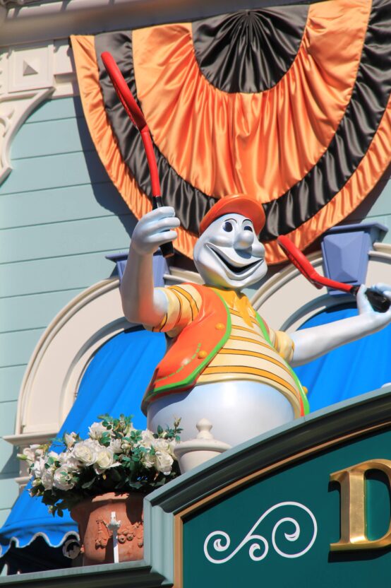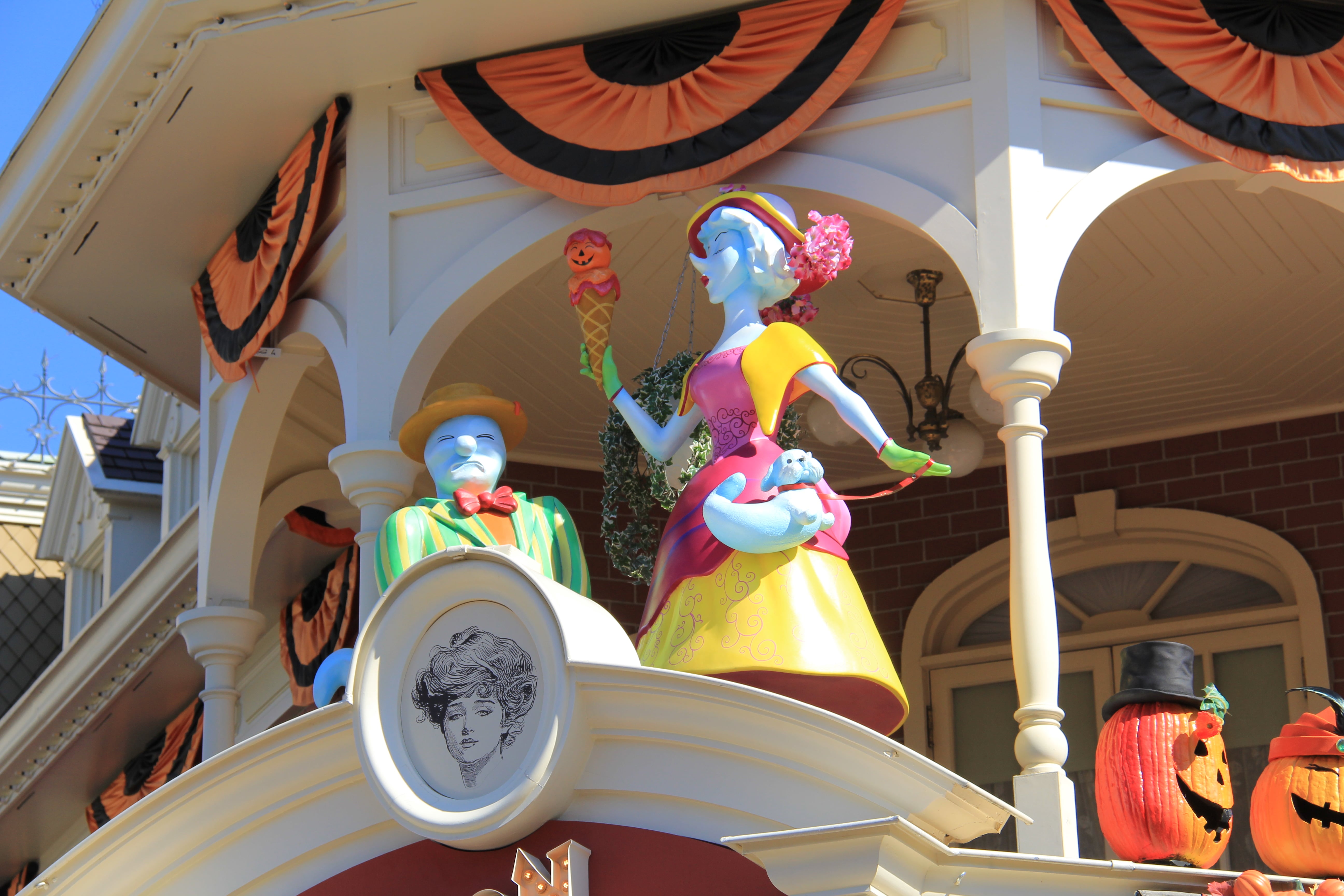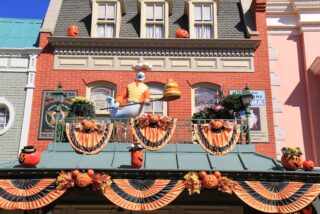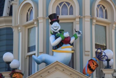 Main Street USA was completely decorated with friendly ghosts on the sidewalks or up on the buildings, and everywhere where you looked, you could see jolly Jack-o’-lanterns. Every once in a while you could even hear the ghosts.