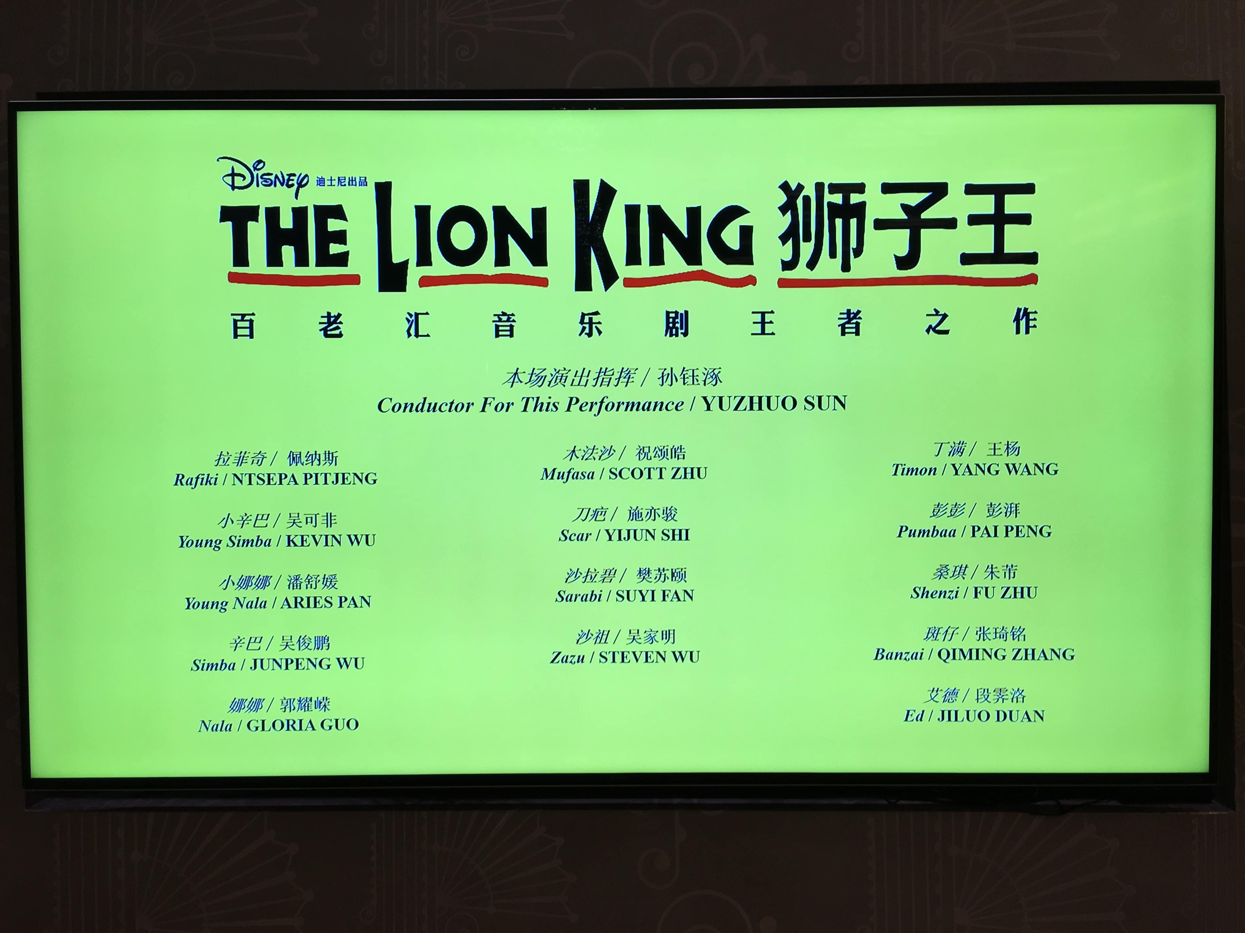 Shanghai Disney Resort announced that the first-ever Mandarin production of the classic Broadway musical, The Lion King, at the Walt Disney Grand Theatre will close, after 500 performances, on October 8, 2017.