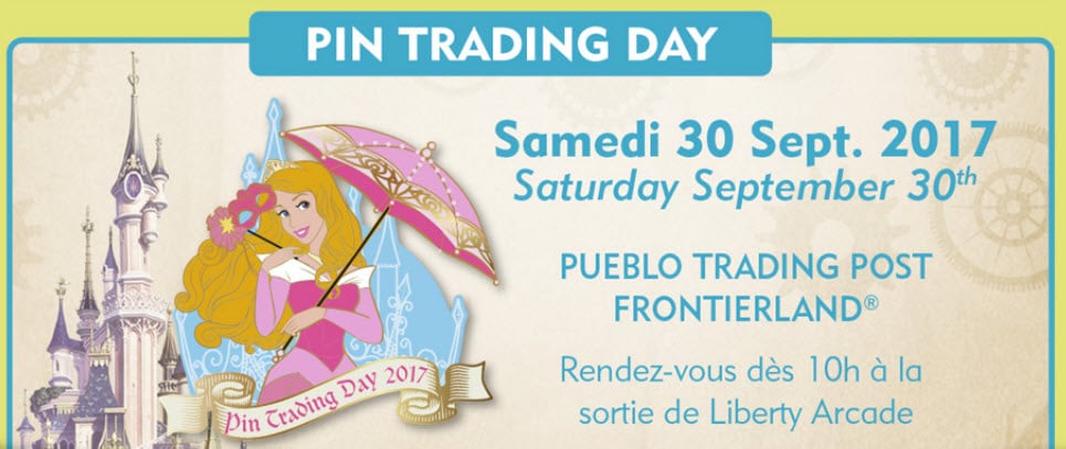 On Saturday September 30 Pin Trading Day will take place at Pueblo Trading Post in Frontierland. This Ping Trading Day also has its own pin featuring Princess Aurora.