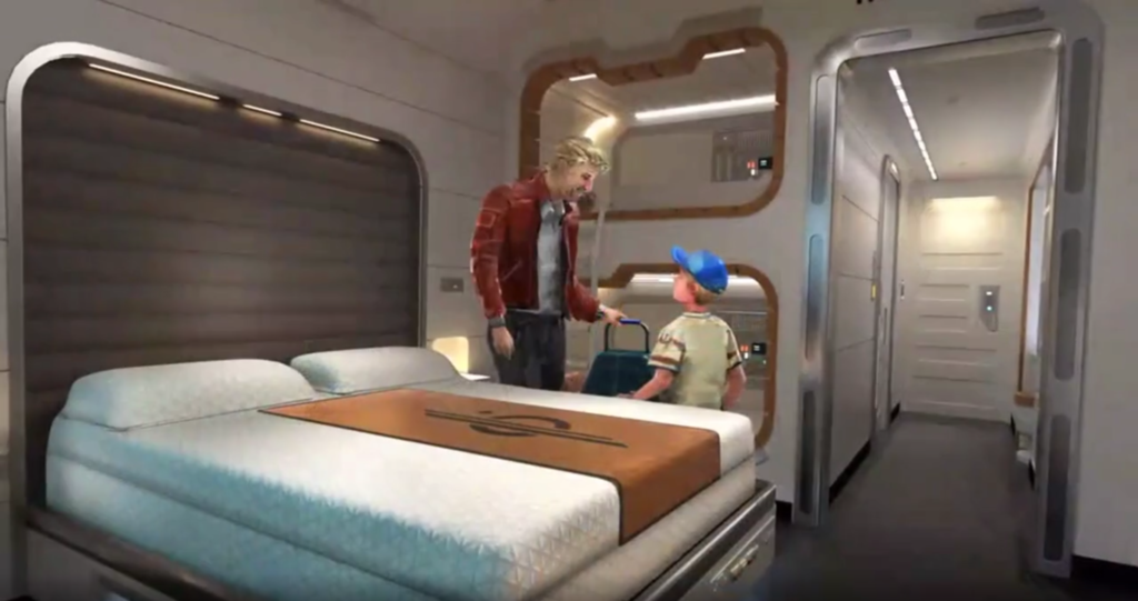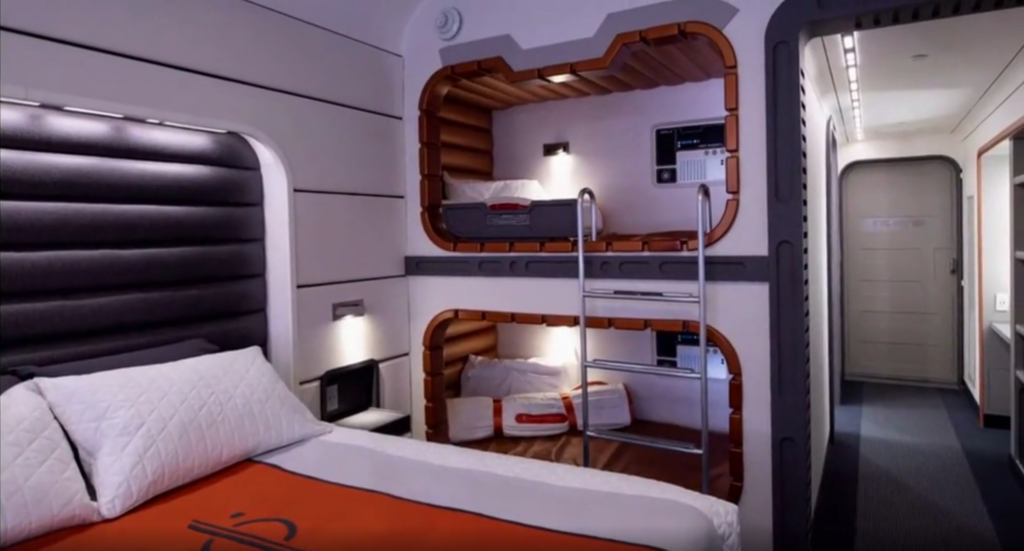 Tijdens de IAAPA Expo: Virtual Education Conference keynote, gaf Josh D’Amaro een kijkje in een van de cabines van het Star Wars: Galactic Starcruiser-hotel. Terwijl de mock-up cabines er vrij exact uitzien in gelijking met de conceptuele kunst, zien de cabines er ook erg krap uit.