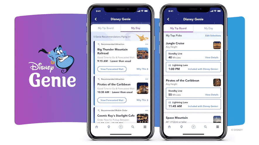 Voor meer informatie over Disney Genie, bezoek DisneyWorld.com/DisneyGenie en Disneyland.com/DisneyGenie