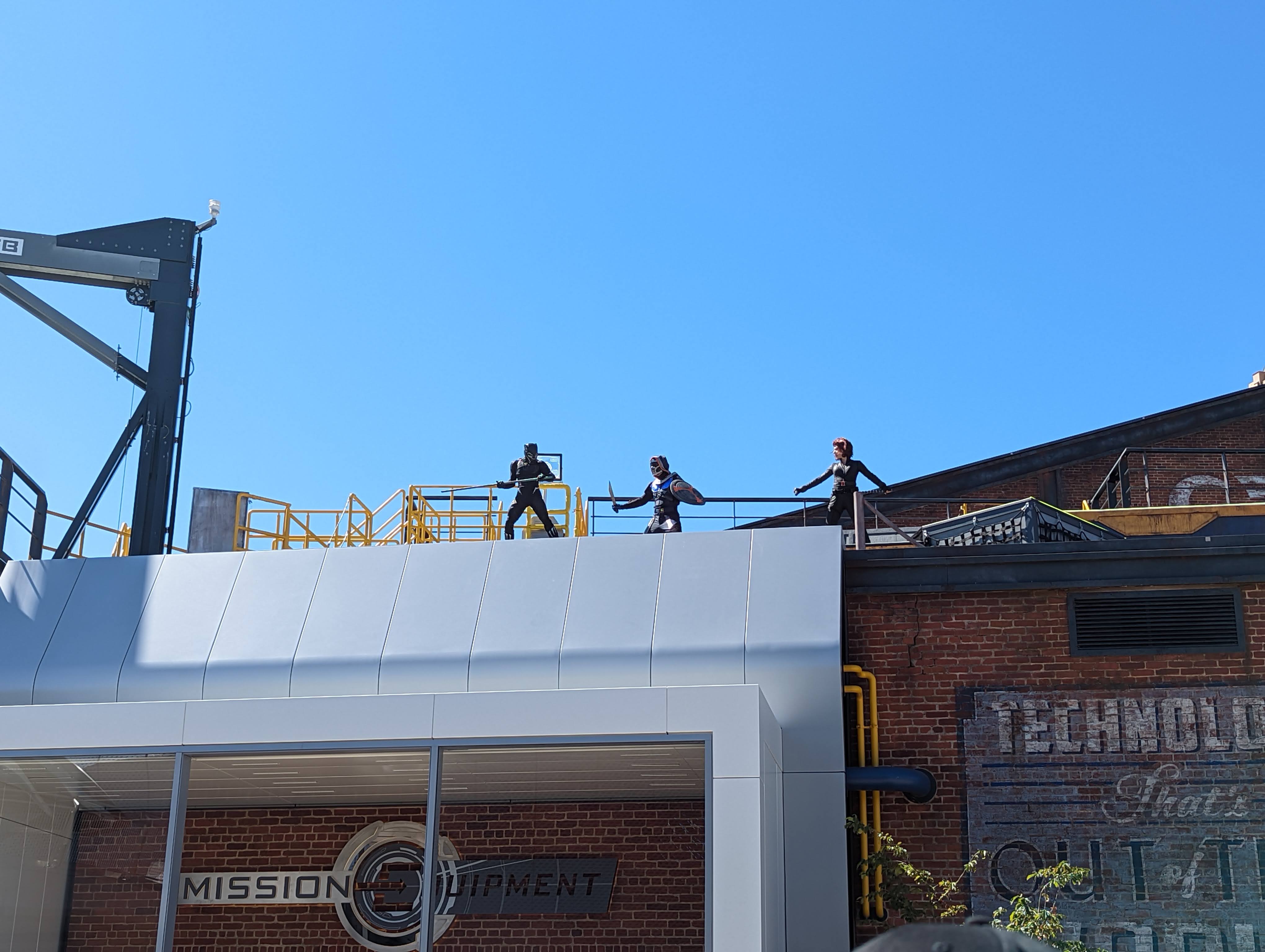 Door de daken van Missie Uitrusting in de placemaking op te nemen, speelt de actie zich hoog boven de nieuwe rekruten af, zodat bijna iedereen kan zien wat er gebeurt. We waren blij dat we van deze show meer konden zien dan van zijn neef in Anaheim, waar de architectuur van het gebouw niet echt bevorderlijk is voor de kijkhoeken.