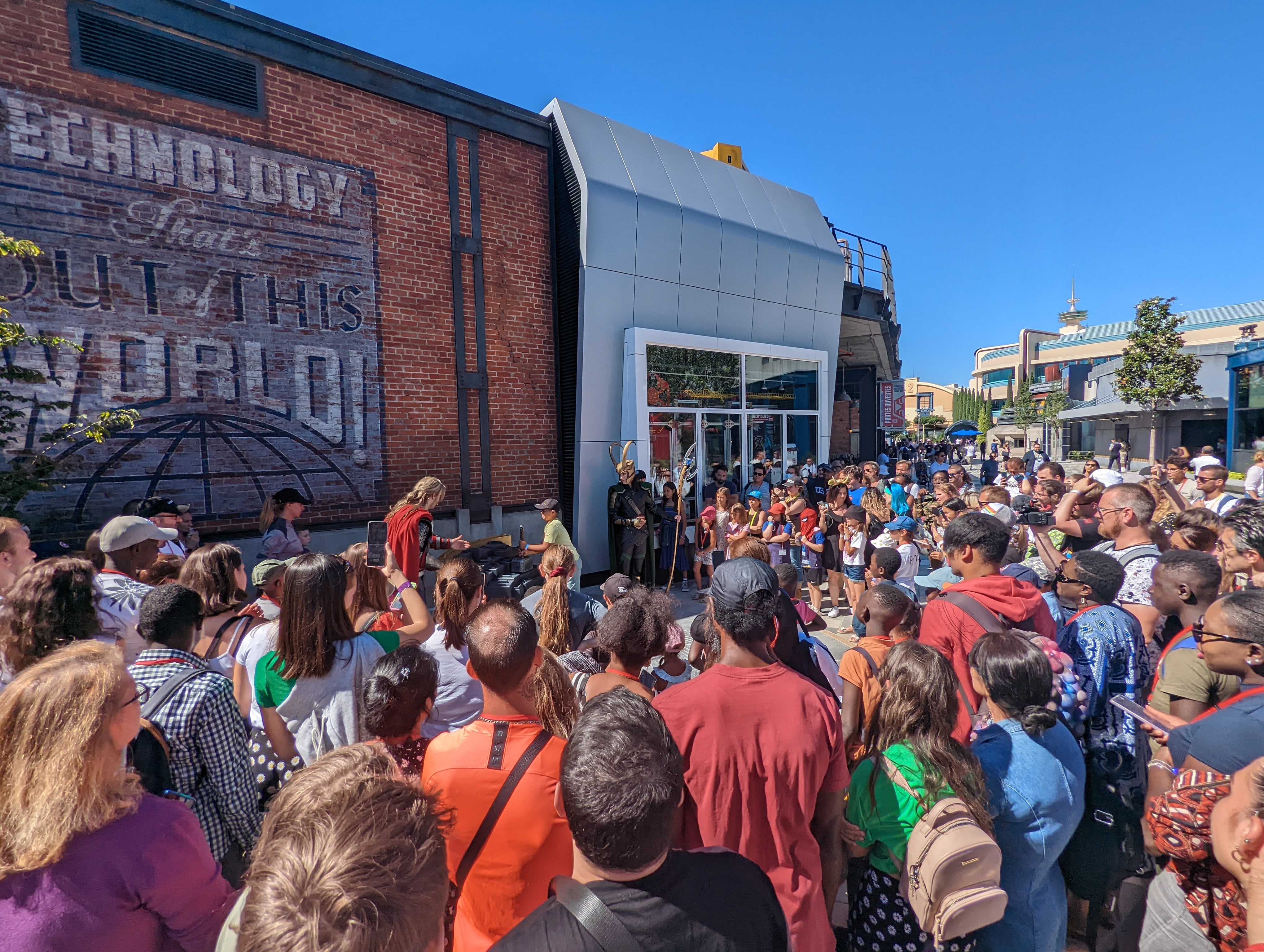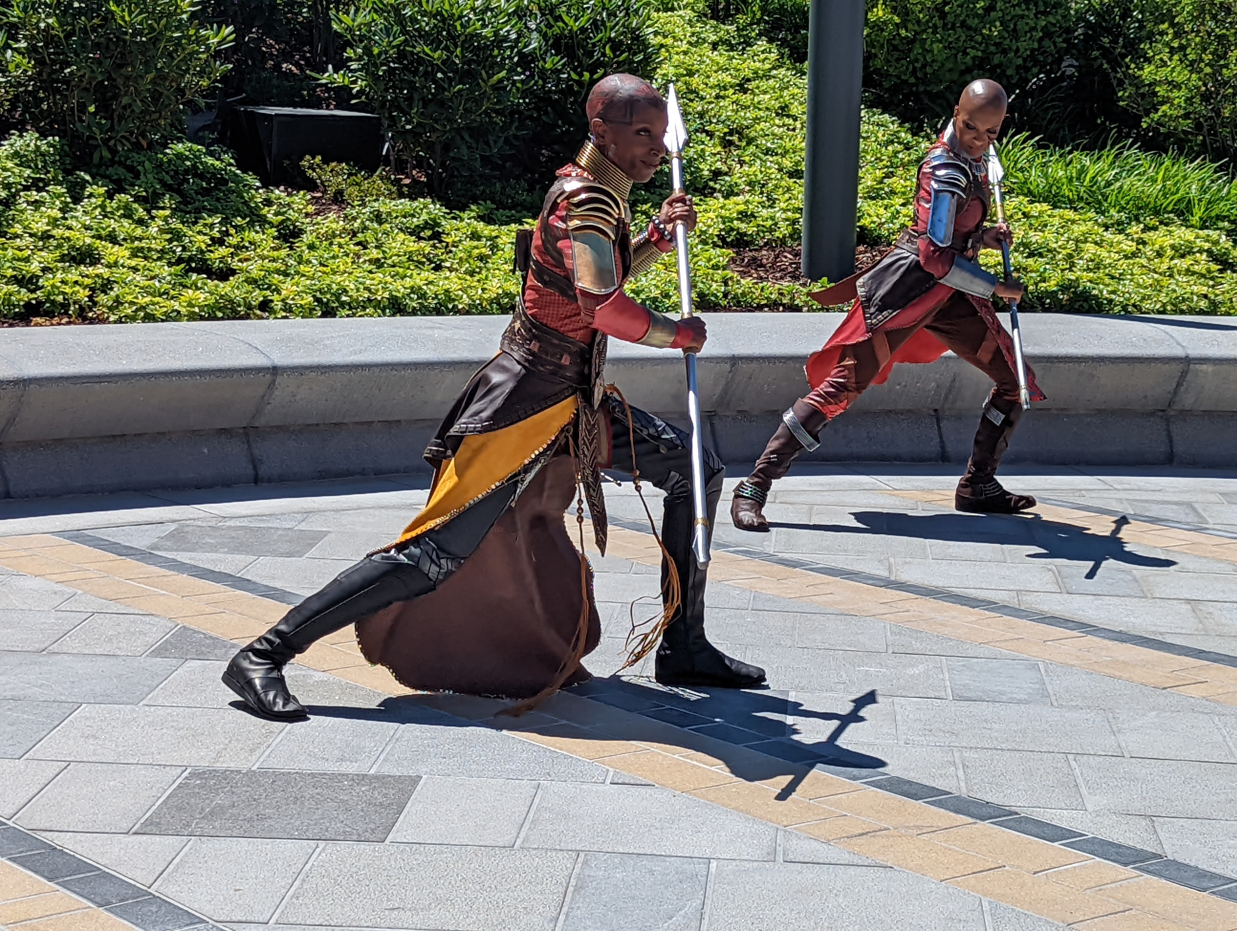 Als je de trommels hoort, kun je je beter naar het kleine gebied tegenover de ingang van Stark Factory want de Dora Milaje is op weg. De Dora Milaje zijn een troep Wakandaanse speciale troepen, een groep stamvrouwen die als lijfwachten dienden van koning T’Chaka tijdens zijn heerschappij als de Black Panther en, nu, T’Challa.