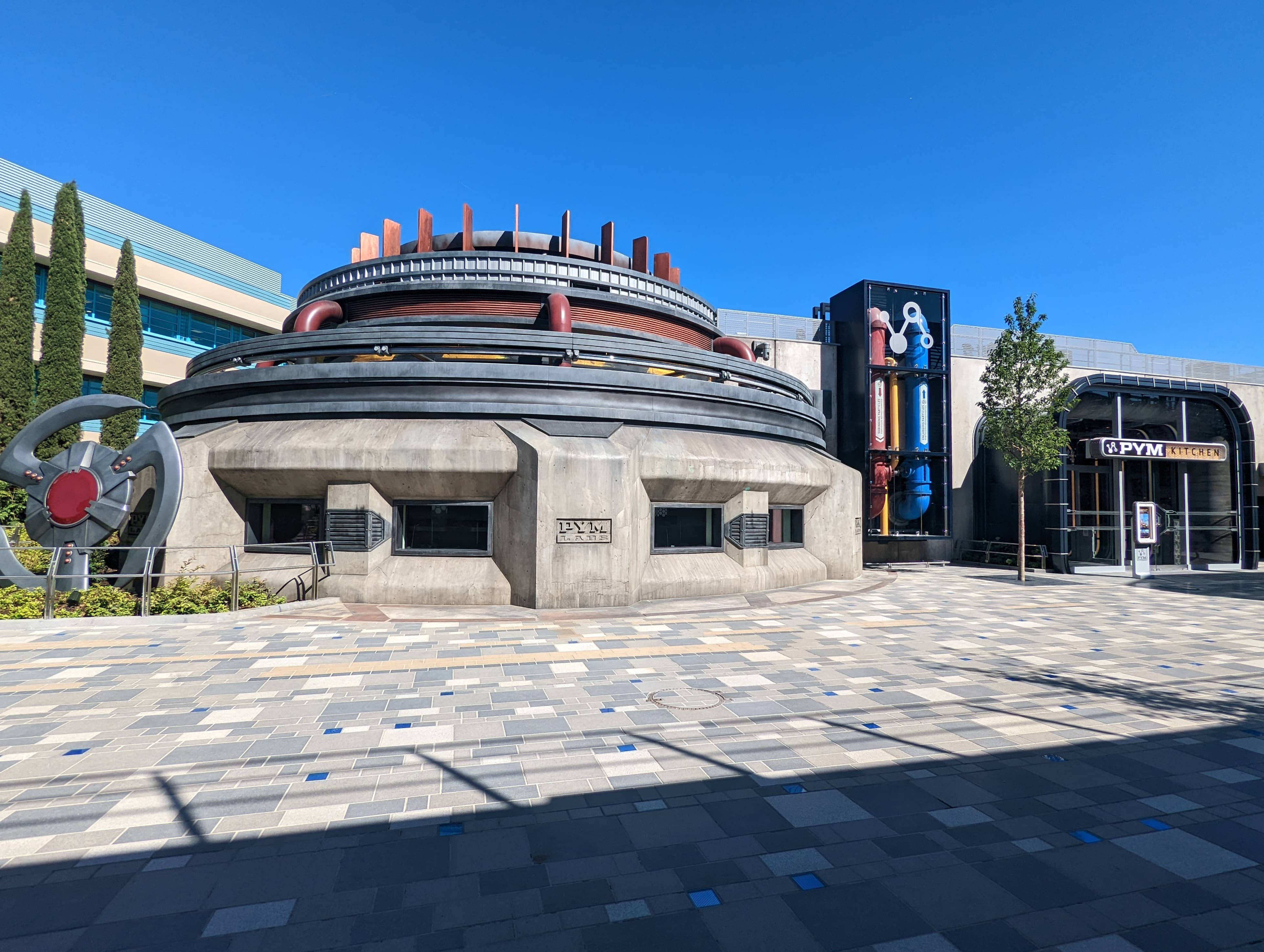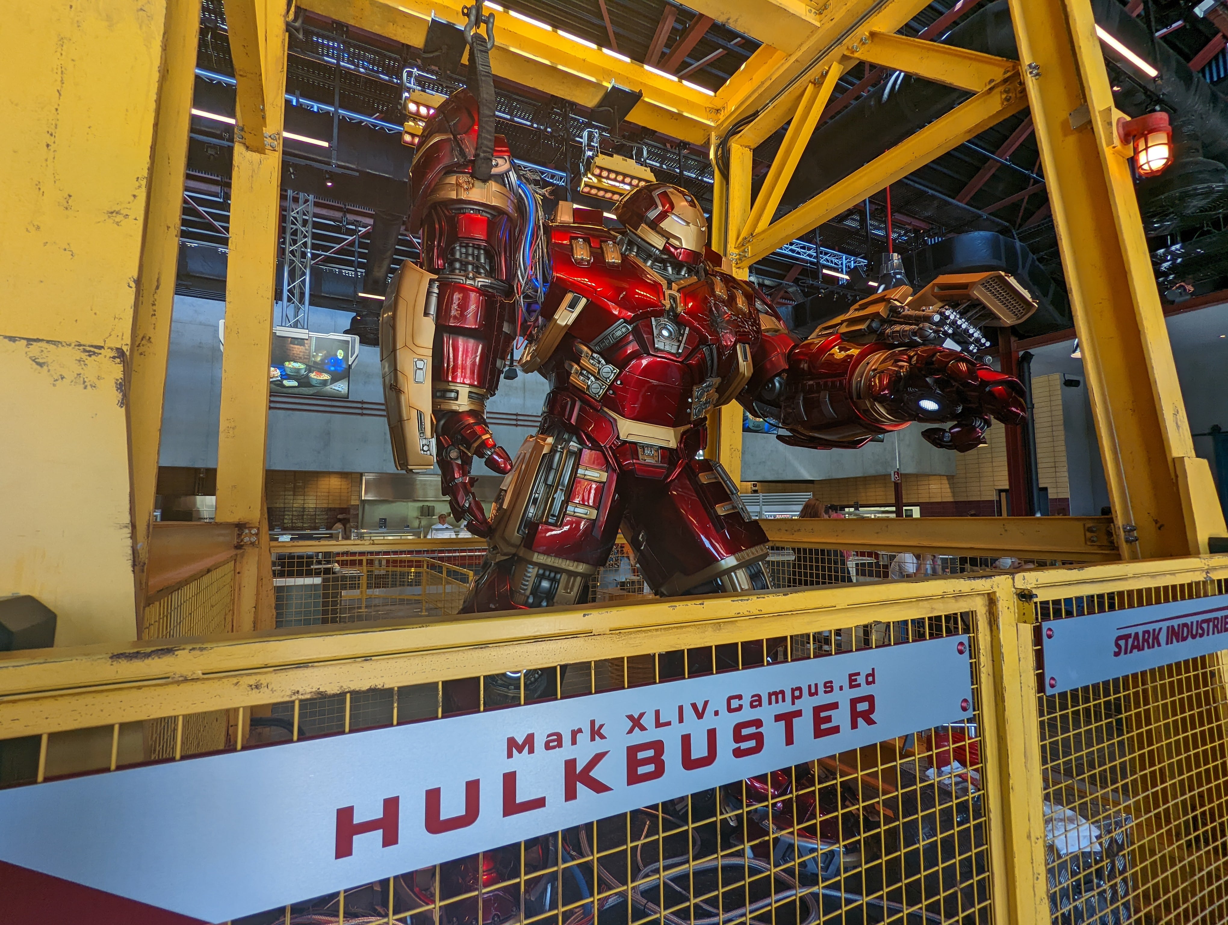Ook de vormgeving van de verschillende gebouwen spreekt van zijn verbeeldingskracht. Van PYM Kitchen die aan de buitenkant aanvoelt als een echt lab, met het beton naar beneden, en de grote glazen deur die door de Quantum Tunnel naar je toe leidt. Stark Factory doet echt denken aan een oudere fabriek. Aan de buitenkant is dat te zien aan het gebruik van het metselwerk, en als je binnenkomt zie je de Hulkbuster in de deuropening staan. Wat een entree.