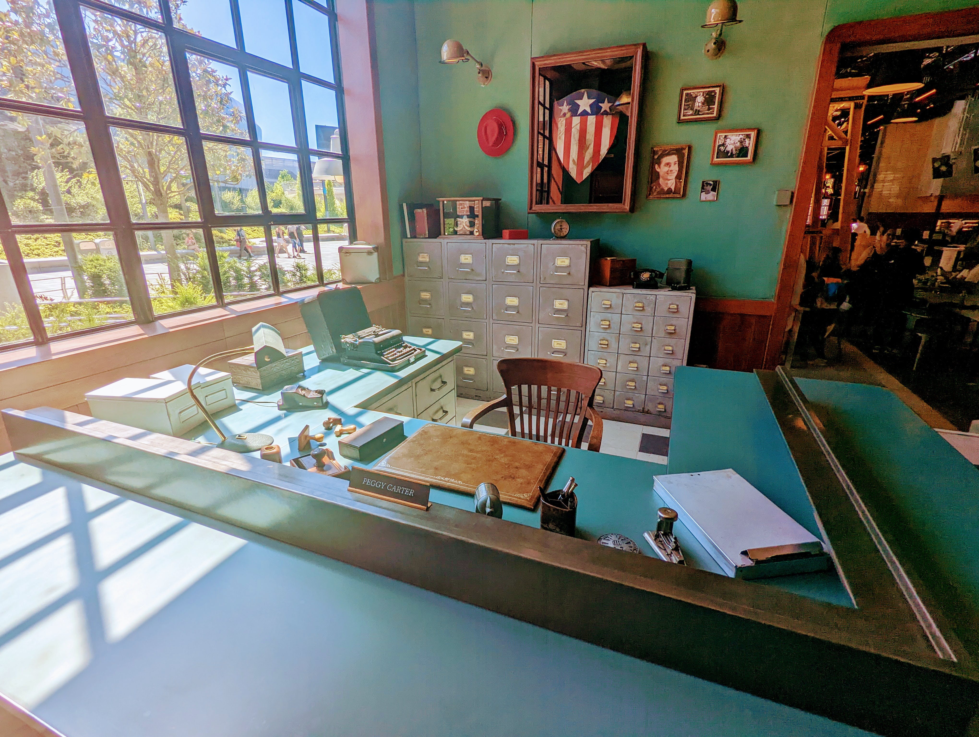 In de andere kamer vind je Peggy Carter’s kantoor. Het verhaal wil dat men bij de renovatie van de fabriek haar kantoor achter deze muur vond. Ga wel op verkenning, want je vindt er een aantal verbluffende verwijzingen naar haar verhaallijn.