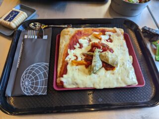 In het restaurant hadden we de keuze om pasta, pizza of salade te proberen. Naarmate we meer gelegenheden hadden om er te eten, probeerden we alles. Van alle aanbiedingen moet ik zeggen dat de pizza mijn favoriet was (er zijn een paar mogelijkheden). Het deeg was lekker luchtig, en er zaten veel toppings op. Het is ook een behoorlijke maat, die gedeeld kan worden door twee kleinere eters, en voor een volwassene die normaal volle maaltijden eet, zou het zowaar zijn maag kunnen vullen. Het enige punt van discussie zou de prijs kunnen zijn, die 14 euro bedraagt. Ik zou verwachten dat er voor die prijs een drankje, een salade, of een dessert bij gecombineerd zou worden.