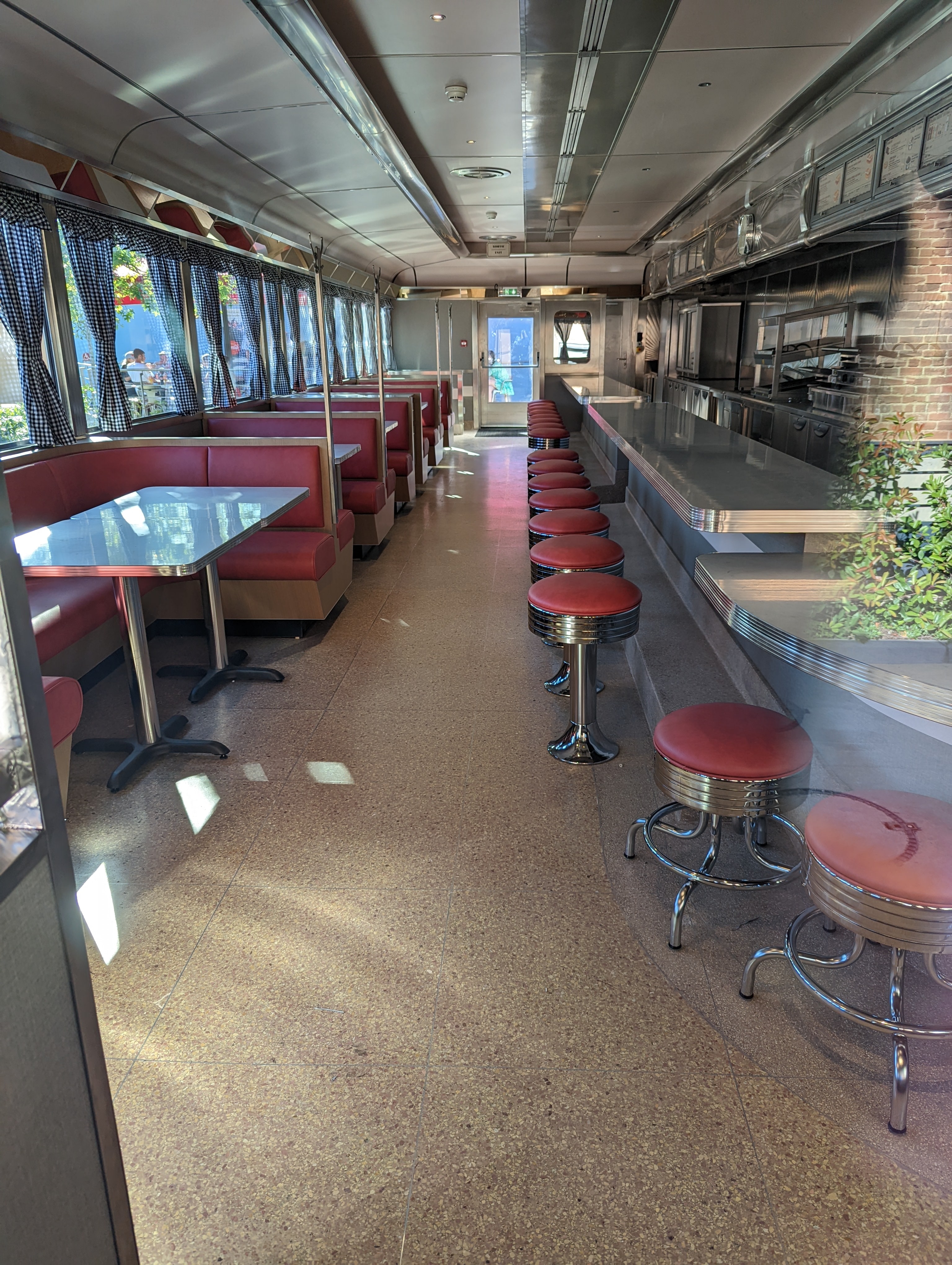 Fans van Disneyland Parijs zullen deze eetgelegenheid herkennen als Cafe des Cascadeurs. Met het nieuwe terrein heeft deze locatie een nieuwe naam gekregen, Super Diner, en wat algehele aandacht gekregen. Tijdens de preview was deze locatie nog niet open, dus we konden ze niet proberen.