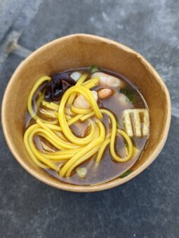 De eerste food truck die je ziet is de Worldwide Eating Brigade. Hier kun je wat Aziatische noedels & kokosballetjes pakken.