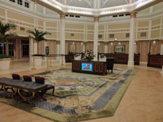 Tegenwoordig stuurt Disney je een e-mail of bericht wanneer je kamer is toegewezen, dus je hoeft niet meer in te checken bij de receptie. We kwamen na 18 uur aan in het resort en gingen meteen naar onze kamer om onze handbagage af te geven en naar de Contemporary DVC lounge te gaan voor het vuurwerk.