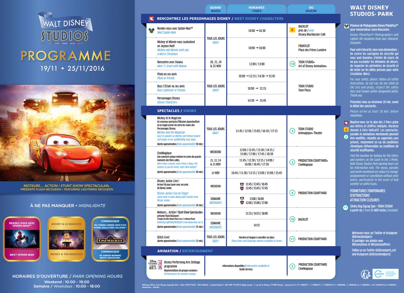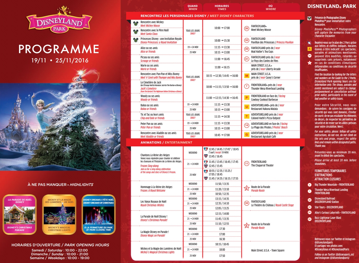 Park Program Disneyland Paris November 19th to November 25th