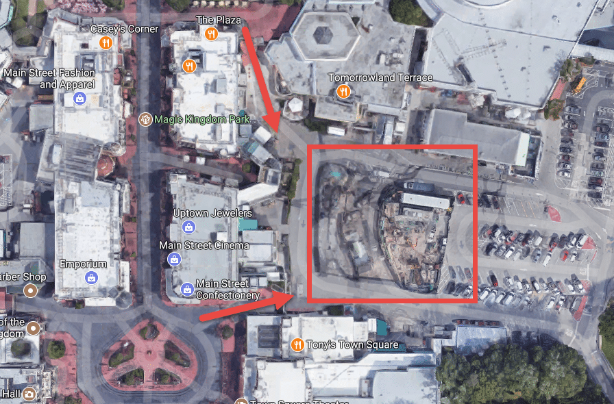 Inspired by the Willis Wood theater in 1920s Kansas City where Walt lived after he left Marceline, this new theater will be built right off Main Street USA. You can see a possible location on the image below. While there was no news on where it would be built, this location does match “right off Main Street USA”, plus there was no announcement of any ride or building being replaced. So our money is on this location.