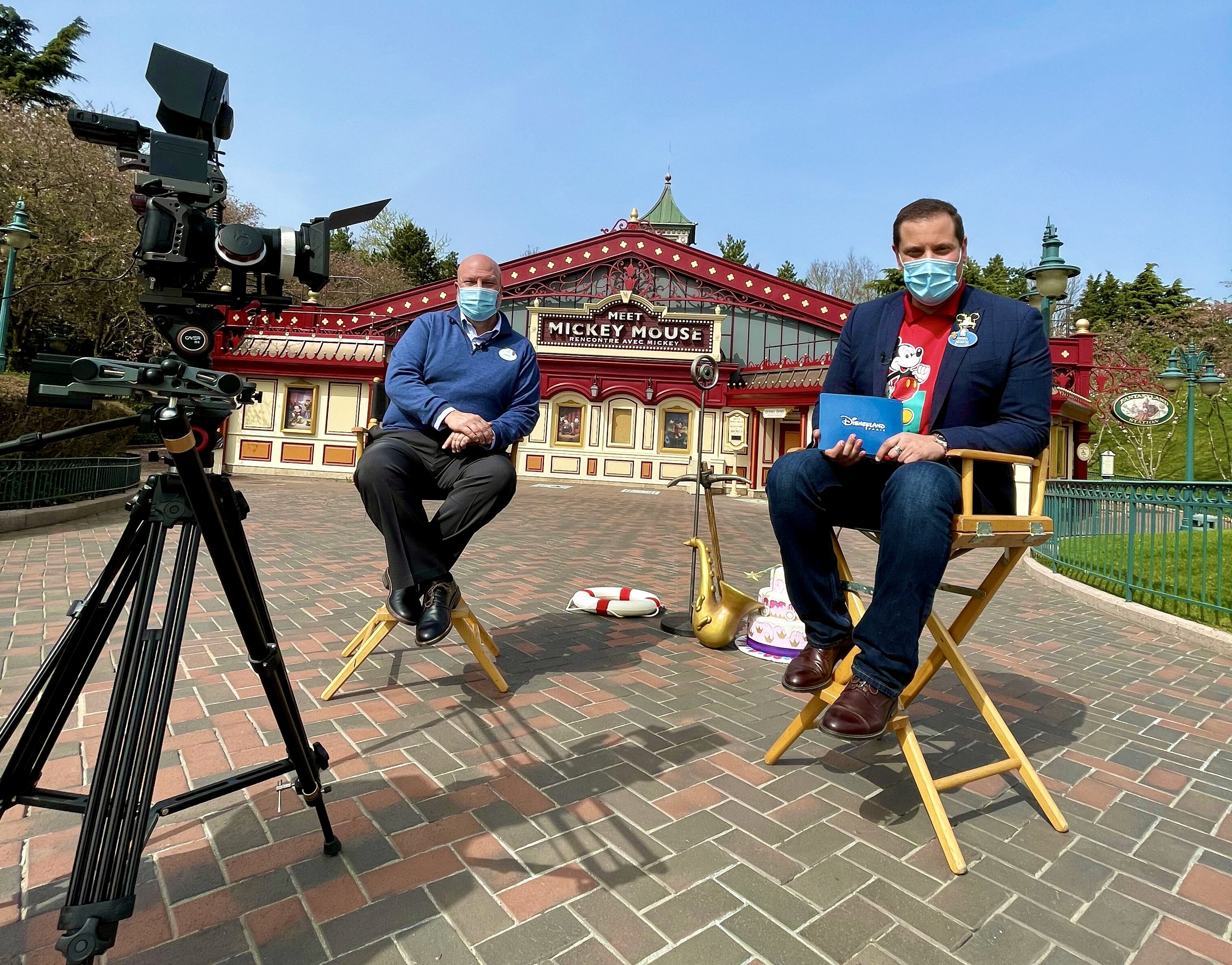 Recording continues for the Disneyland Paris’ 29th Virtual Anniversary on April 12. On the photo we see Disneyland Paris Ambassador Giona with Vice President of Entertainment, David Duffy.
