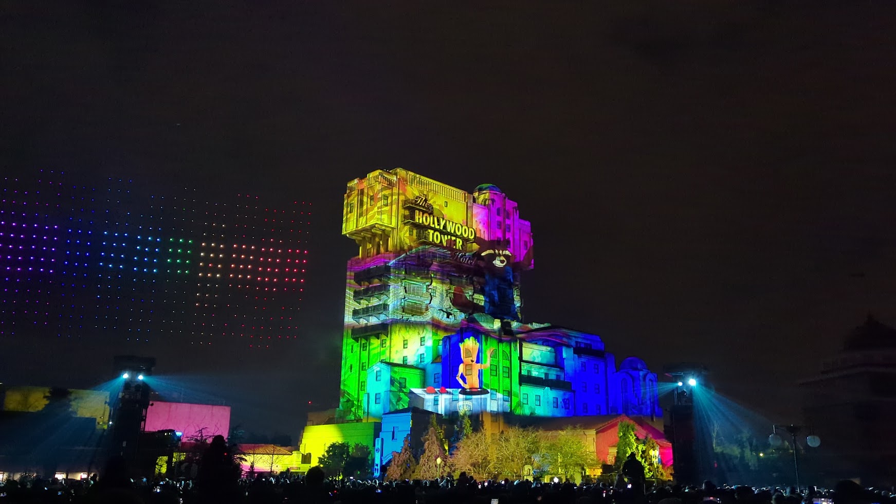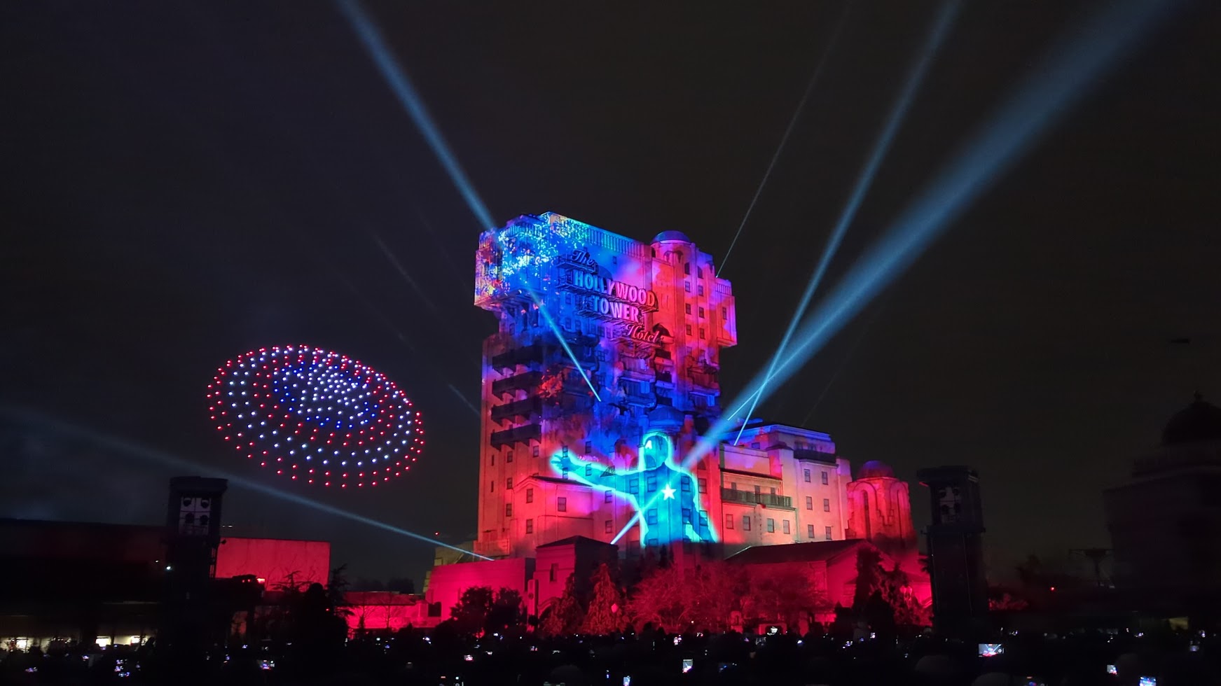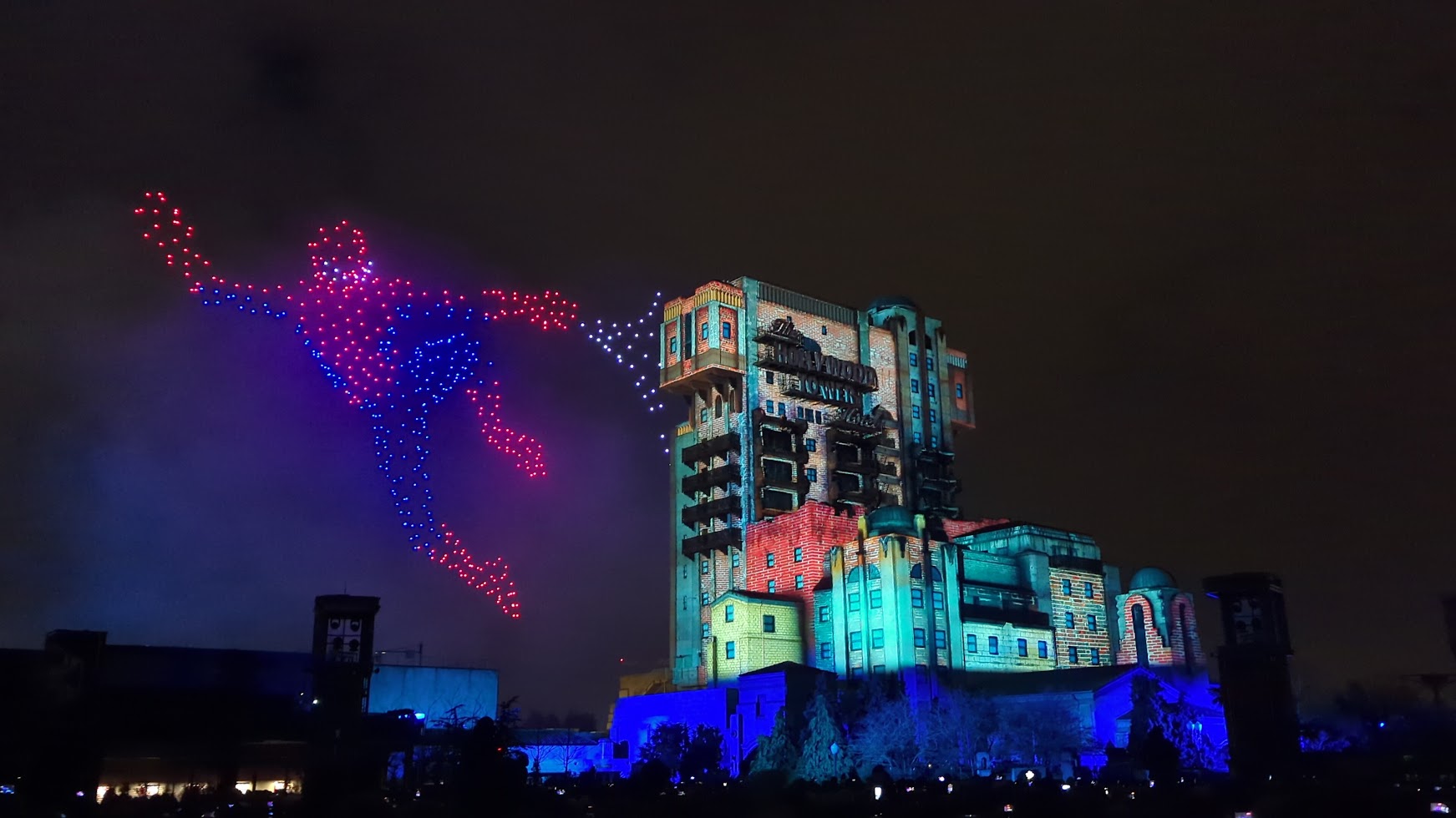 The show takes about 8 mins and 30 seconds and uses 500 drones, project mapping, and pyrotechnics. And when I say you will be amazed, that is just an understatement. The storytelling is on point. The original music and animation make it into something that you haven’t experienced before. The drones sometimes get so close to the Tower of Terror that I thought they would collide. And more than once, I was amazed at how the drones complemented what was seen in the animation. The drones in the sky and lasers and fireworks shooting from the Tower give the animation a 3D feel. I believe that projecting mapping and the use of drones is the future, and Disneyland Paris is definitely the leader in that regard. Also, read the interview with the team that worked hard on creating Avengers: Power the Night.