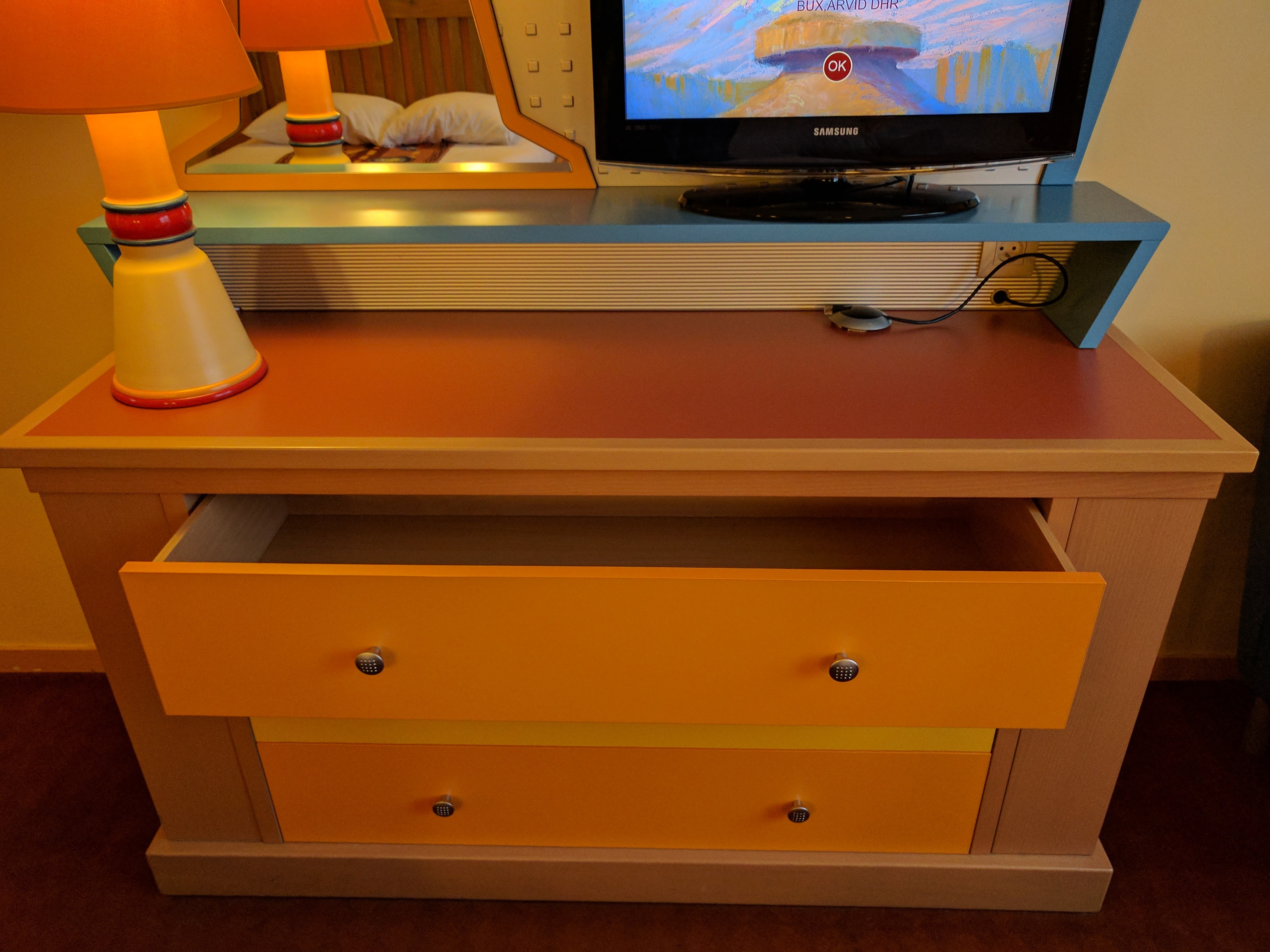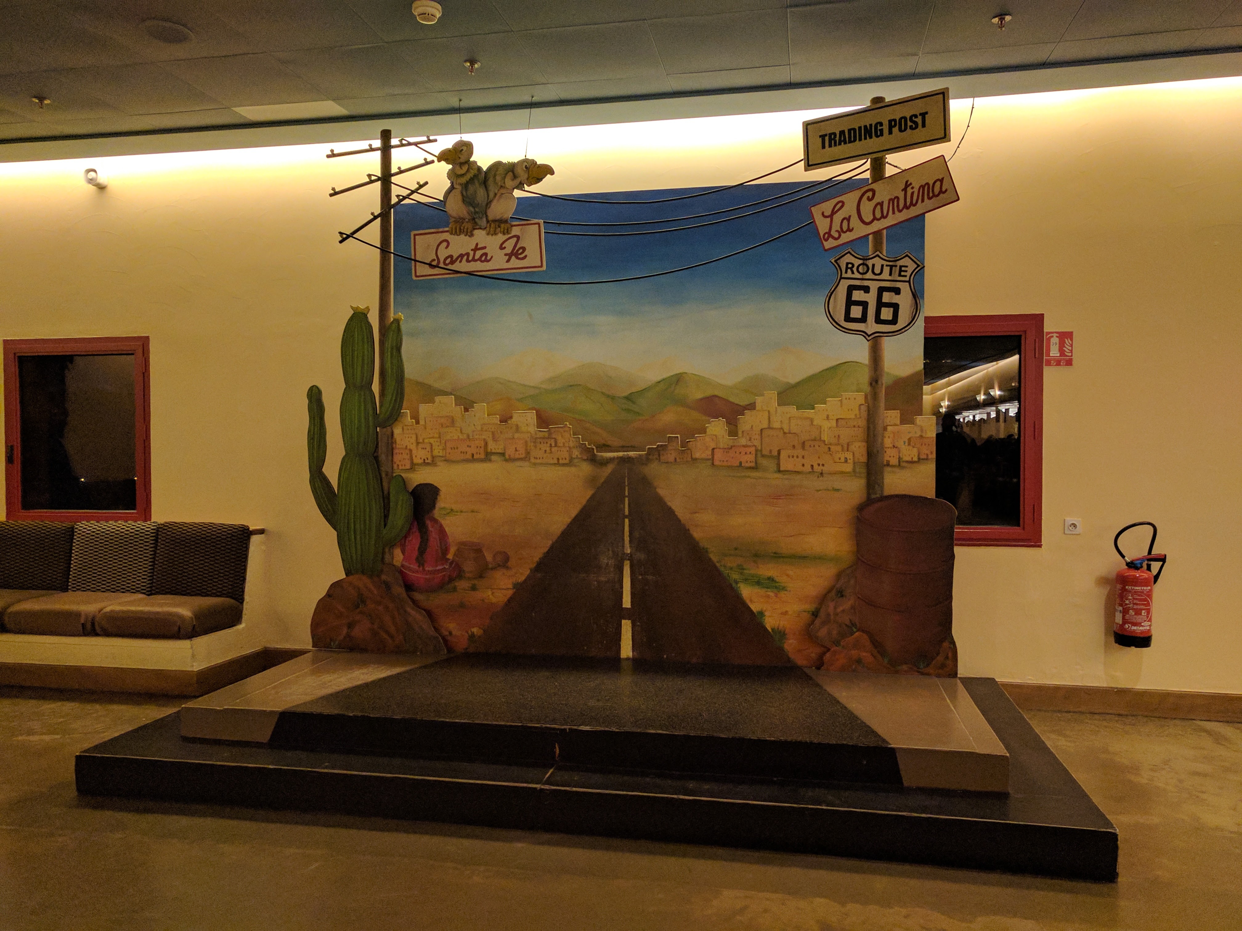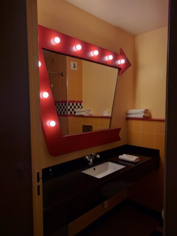 Overall I had a bit higher expectation of this hotel since it was recently renovated so there was a bit of disappointment. Yet, for the price I cannot complain too much. It’s a great location and nice morning walk along the Rio Grande (the waterway) to the park. Walking around the property is also fun as you will discover some unique items that represent the great Southwest of the U.S. Because it is a large property, the many buildings help spreads out the busyness and provides a nice quiet place to relax and rest. I don’t think I ever heard our neighbors with the exception of the kids leaving the rooms in the morning. If your child or you love Cars or Route 66 and the great outdoors, this hotel will suite your needs.