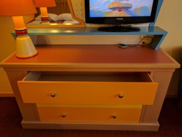The overall space of the room was nice and the details in the bathroom with the race day theming was nice. We realize what disappointed is the fact that there is carpet and made the room much more dusty compared to Hotel Cheyenne’s laminate floor. A positive is that the safe was of normal size unlike Hotel New York so you can store things and the hair dryer included in the room unlike Hotel Cheyenne. We noticed many guests at the hotel wanted to refrigerate things, but as the resorts do not offer it, we saw many people have beer, food and other drinks sitting on their ledge outside their window. So if you visit during the cold months, you have a free cooling place just outside your hotel room window.