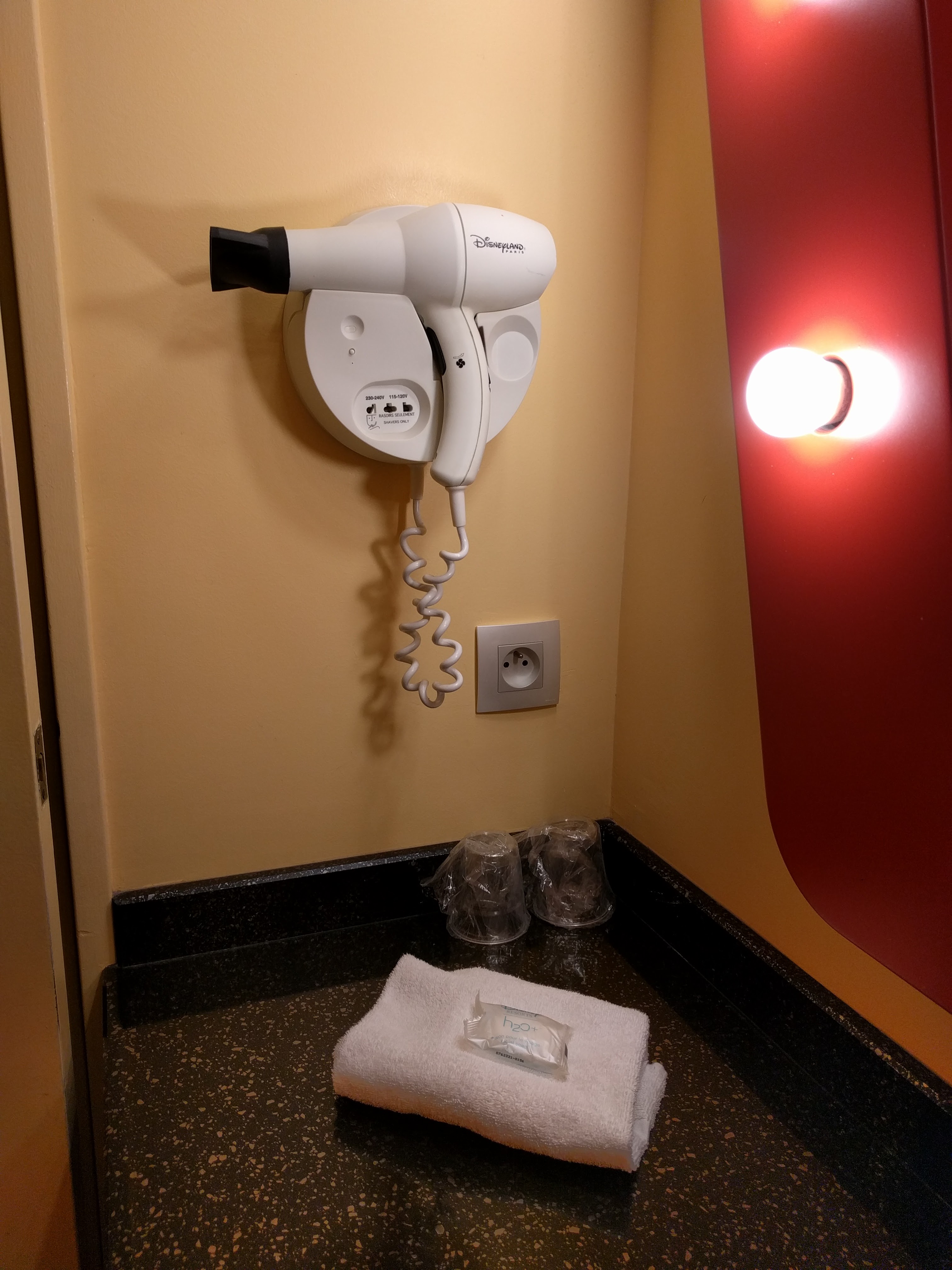 We stayed in the Eldorado Room situated across from the main hotel building. Upon entering the building we noticed that the area already looks tired with all the traffic of people. We were a bit sad to see the beating it’s taken since it’s renovation three years ago, but the spring filled beds were still sturdy and comfortable for a good night’s rest. The bathroom was still well maintained and I personally liked how much counter space there was and that a hair dryer was included. Toiletries are always slim pickings in Paris but H2O products are still provided with a soap bar and a shampoo/body wash liquid.