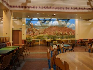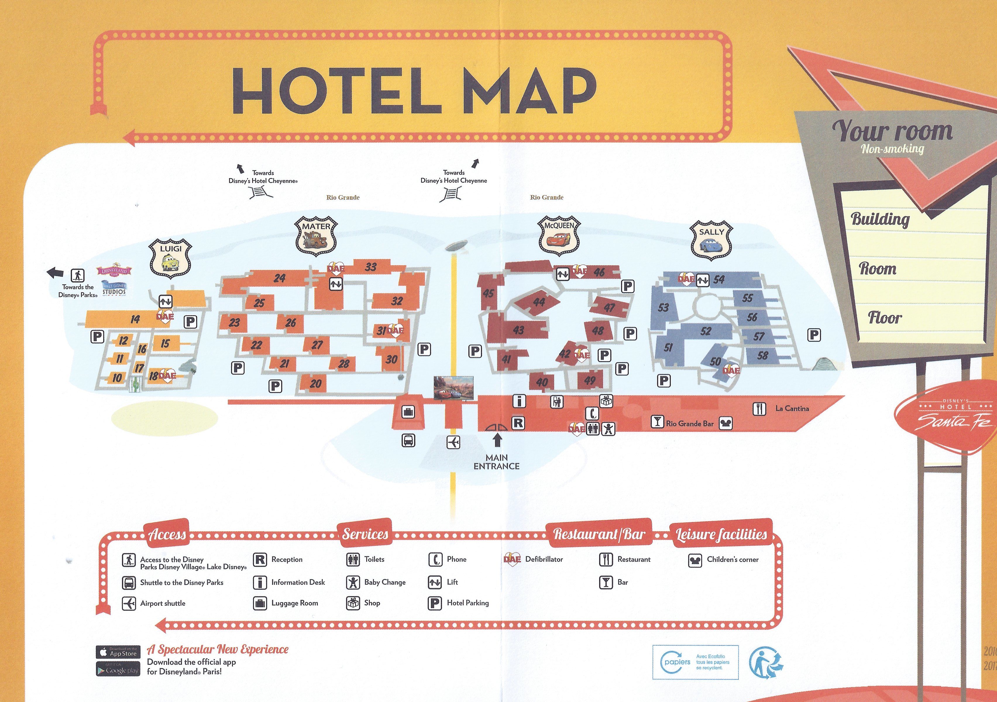 Sitting just across the river at Disneyland Paris from Hotel Cheyenne is sister hotel, Disney’s Hotel Santa Fe. It offers similar amenities at the two star level. Renovated in 2013, the newly re-imagined resort moved from a pure Route 66 Southwest theme into the world of Cars. Now the property provides a blend of fun Cars characters and gives a nod to the history and people of the states where Route 66 crosses.