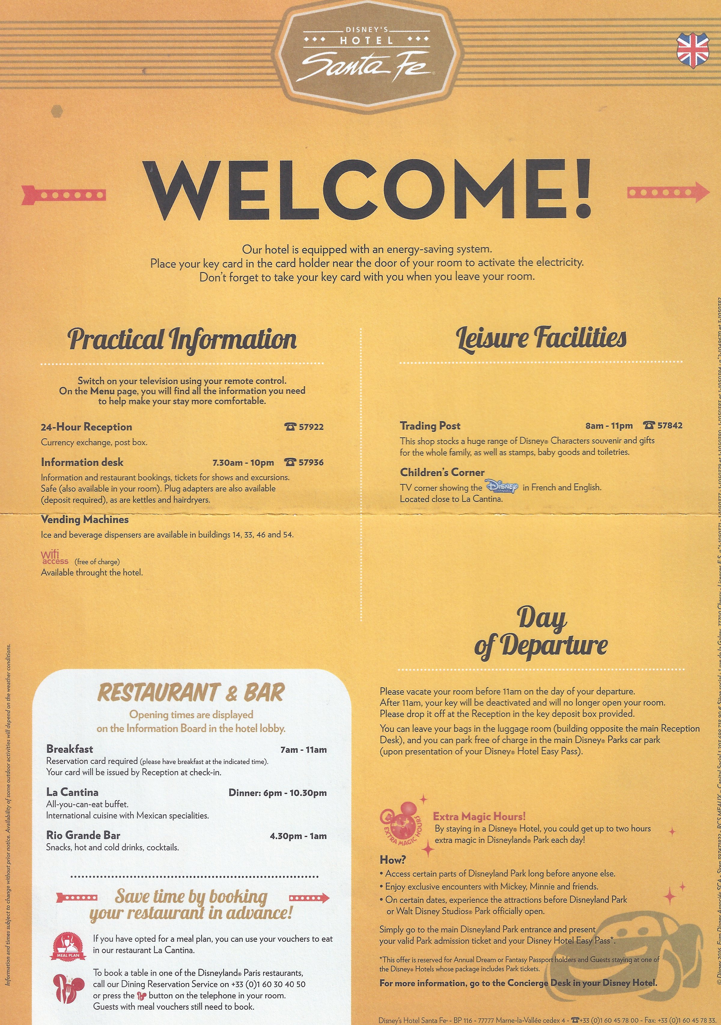 There is not much to say that varies from the other reviews as this is the standard Disneyland Paris resort breakfast. However, the layout is much better than Cheyenne with better lighting and more ease of maneuvering through the crowds. La Cantina serves at both breakfast room and dinner buffet. This is also connected with the bar in the evening and they block off part of the area to better separate the two spaces.