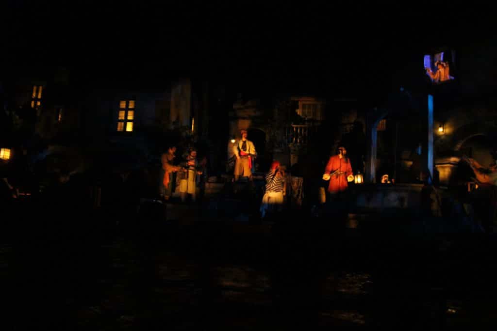 While we move forward, we get to the auction scene. Where first brides/wives were auctioned off, now with the Redhead taking a central role in this scene, citizens of the city which is being run over by the pirates sell their goods. All the animatronics have received some well deserved upgrades and look amazing. Their costumes look new, and their faces got some touch-ups. As mentioned before, also here, several animatronics have received some additional spots lights, especially the ones that have ‘a speaking role’. This makes sure you can follow the story a lot better, knowing which character is talking.