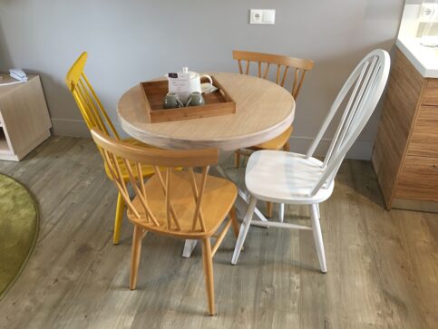 Now onto the actual room and experience. As we entered the room, we saw what was displayed on the website. A beautifully decorated and designed space. The living room has nice green and wood accents with a country table and mix of chairs to accompany it. Outside offers a table and lounge chairs to enjoy a tea in the morning and look out to the nice views.