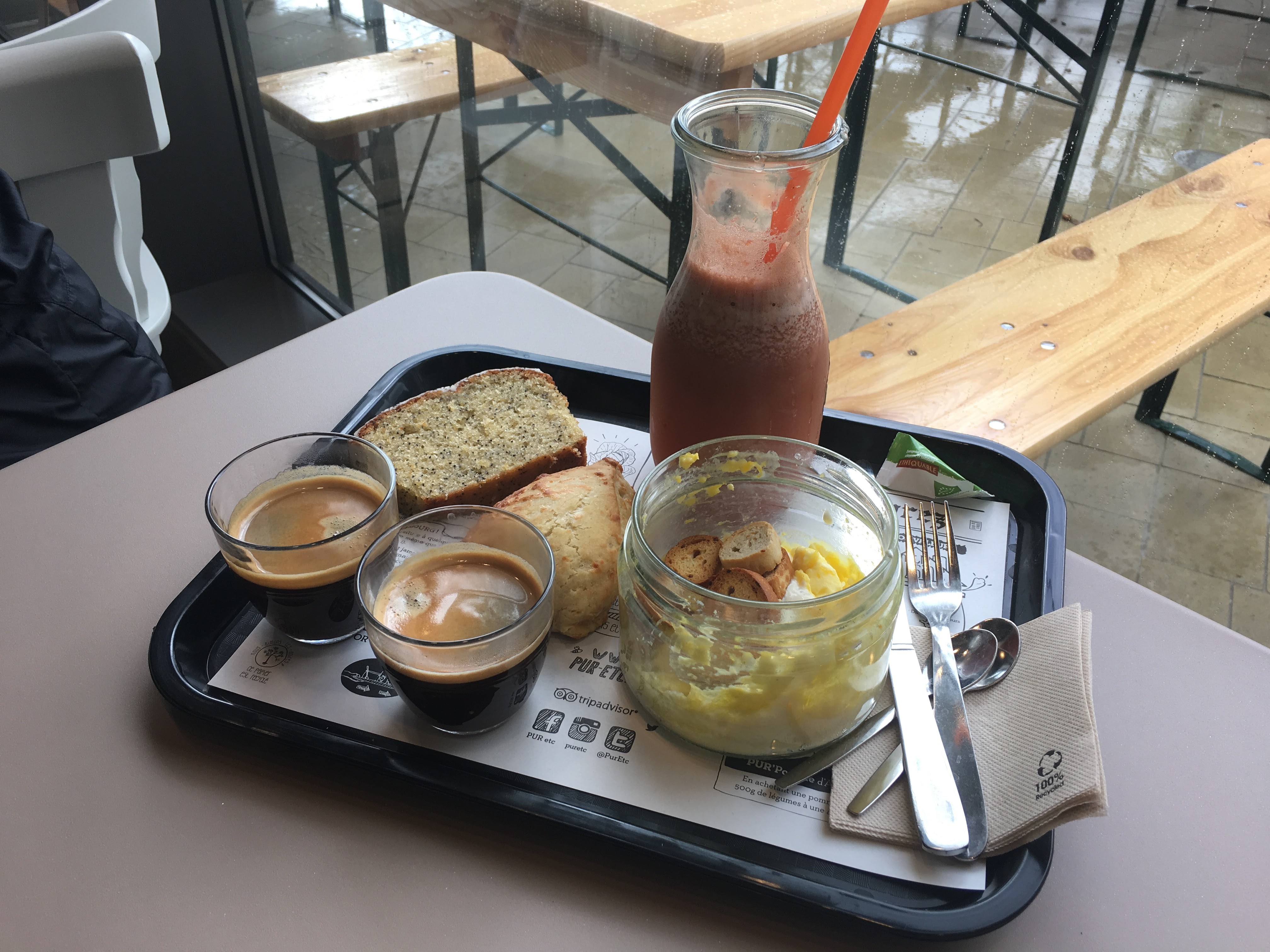 We came for breakfast and had their breakfast set which included a warm drink, juice and pastry. All the pastries they offered us was sweet and as much as I like that I was hoping for a croissant or scone. We ended up with a lemon loaf and cheese scone. Although good, not what we were craving. We also ordered the supplemental egg dish which was organic and delicious.