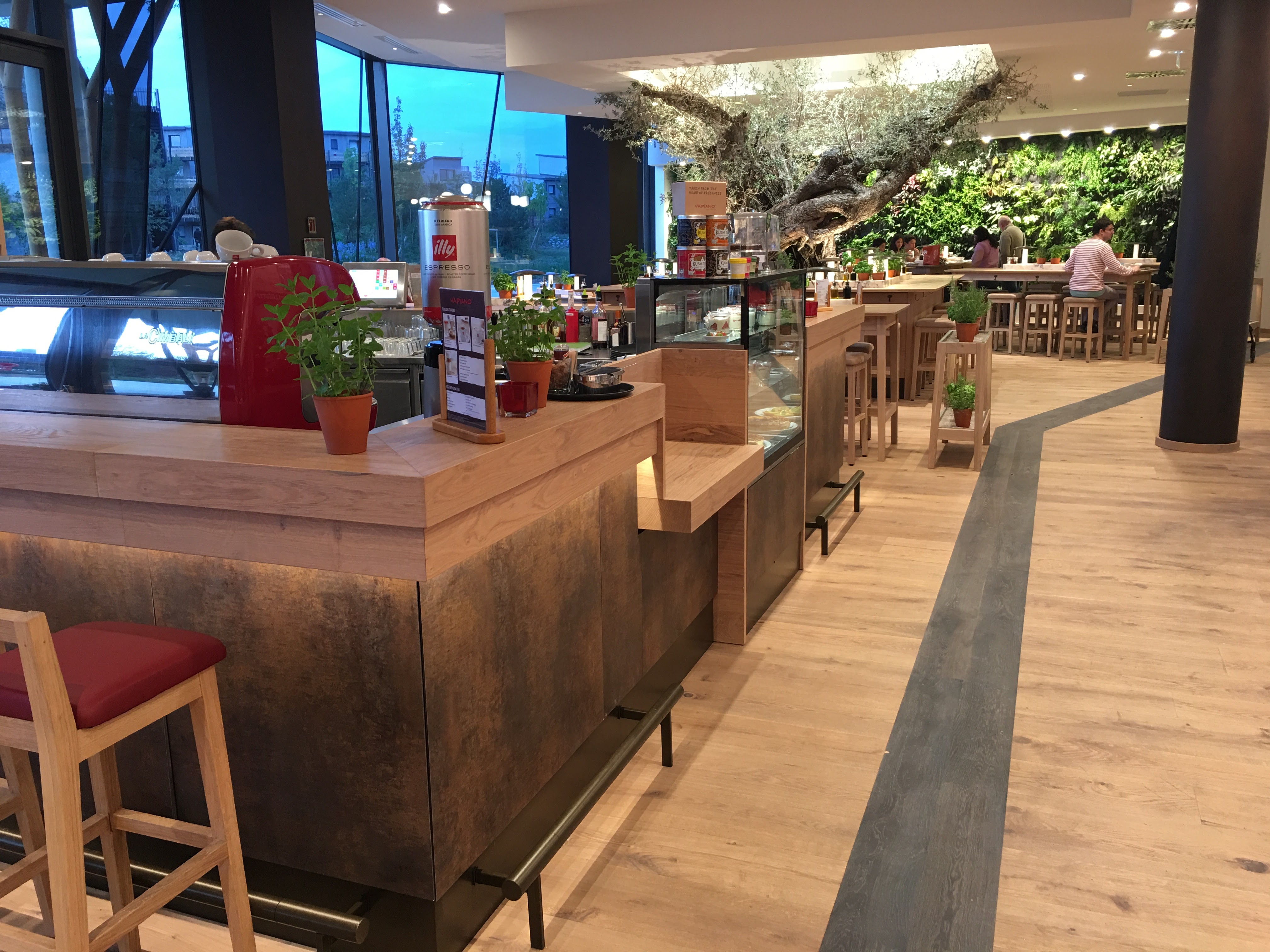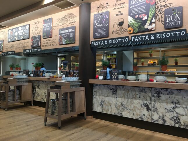 Vapiano is a German chain providing Italian-inspired fast fresh casual meals. There are multiple food stations where you can get made-to-order pizza, pasta, salads.