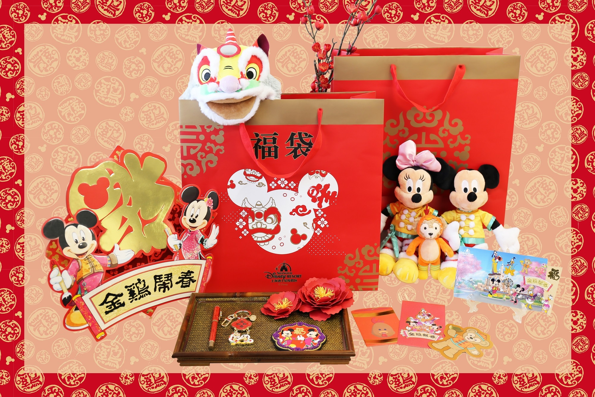 During this most perfect time of year to send gifts to loved ones, Shanghai Disney Resort has prepared fun merchandise offerings for guests, including the first-ever New Year Lucky Bag. The Lucky Bags include this season’s most exciting assortments of Disney merchandise and are a tremendous value to kick off this celebratory season. Guests purchasing the Lucky Bag will have a chance to win surprise grand prizes including China Eastern Airlines flight tickets, Disney PhotoPass+, Shanghai Disney Resort Magic Passports, and much more. The resort has also launched a brand new Golden Rooster-themed merchandise line, with more than 50 new limited-time items. New merchandise includes themed pins, headwear and stationery, exclusive New Year-edition outfits for the whole family, plush toys of Mickey and Minnie donned in their decorative Chinese traditional attire, red envelopes, pastry boxes, and other fun items. Meanwhile, Disney PhotoPass will launch 4 Chinese New Year themed photo frames.
