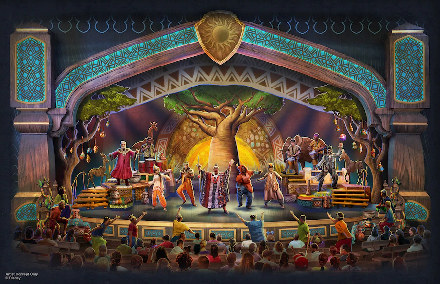 Beginning May 28, 2022, Disneyland park will welcome “Tale of the Lion King” to its new home at the Fantasyland Theatre where this original, story-theatre adaptation of Disney’s “The Lion King” will be staged in an all-new presentation (as depicted in this artist rendering).