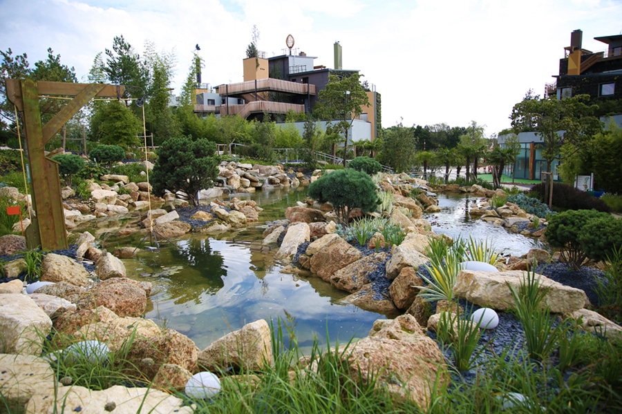 Jacques Ferrier, architect of the Aqualagon, explains that water is at the basis of the architectural design of the building: “Water is everywhere and in all its forms at Villages Nature Paris. The Aqualagon is the destination’s emblem, celebrating it both inside and out. Water is at the heart of the architectural project. This new landscape is created by mists, water vapours and aquatic plants.”
